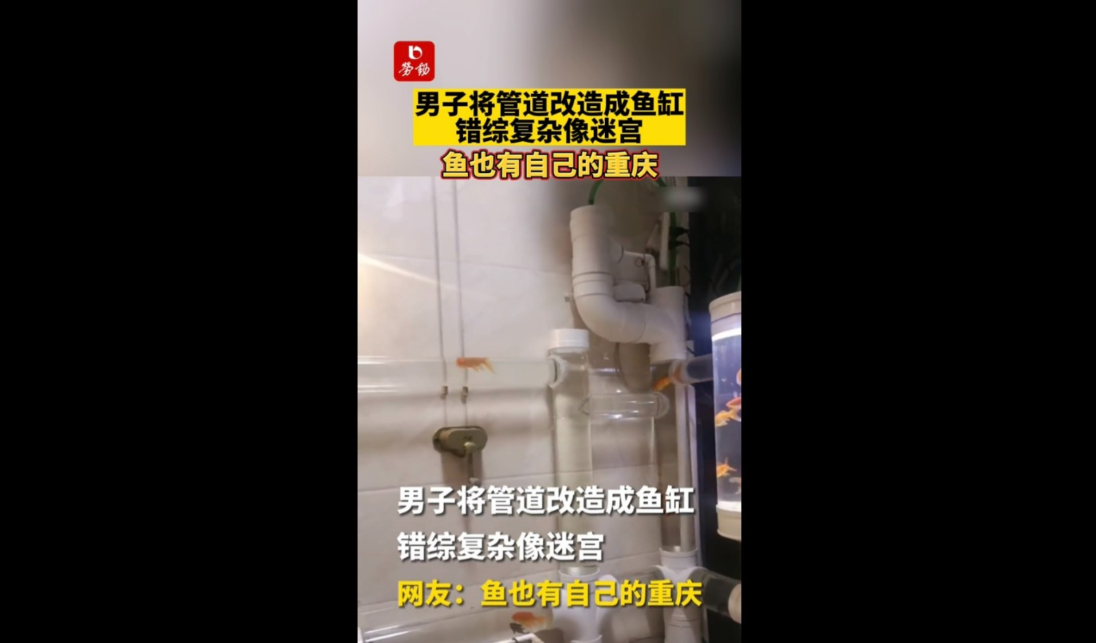 男子将管道改造成鱼缸,错综复杂像迷宫,鱼也有自己的重庆
