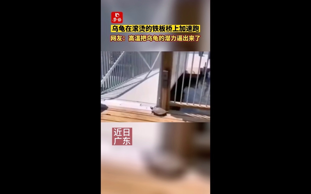 乌龟在滚烫的铁板桥上加速跑,网友:高温把乌龟的潜力逼出来了。
