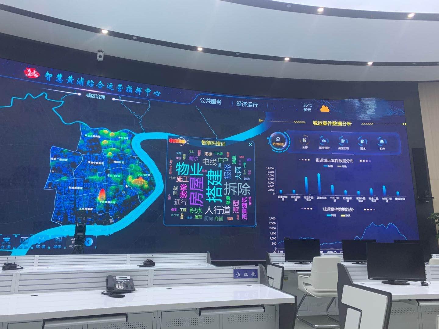 在“智慧黄浦”综合运营指挥中心内,记者见到了这颗“智慧大脑”。100平米的大屏幕上,防台防汛数据正在不断更新。黄浦区所有街道以3D画面形式呈现在大屏上,一侧还显示着“智能热搜词”:物业、房屋、搭建、积水……每个热搜词的字体大小也有不同。