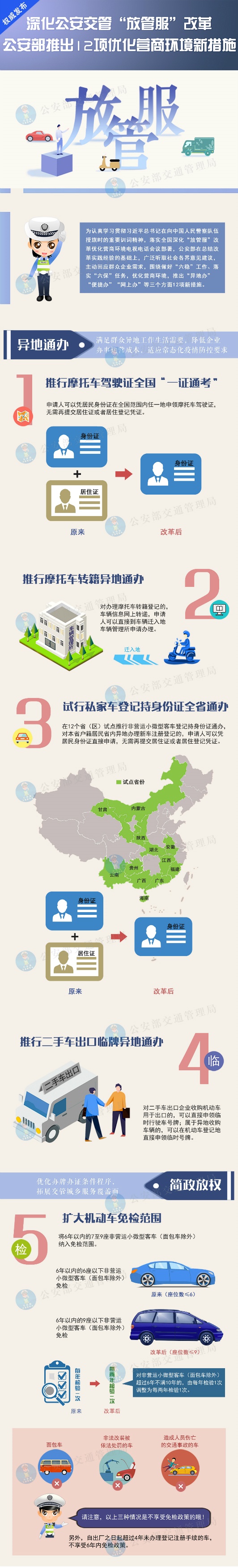 ——试行私家车登记持身份证全省通办,在12个省(区)试点推行非营运小微型客车登记持身份证通办,对本省户籍居民省内异地办理新车注册登记的,申请人可以凭居民身份证直接申请,无需再提交居住证或者居住登记凭证。