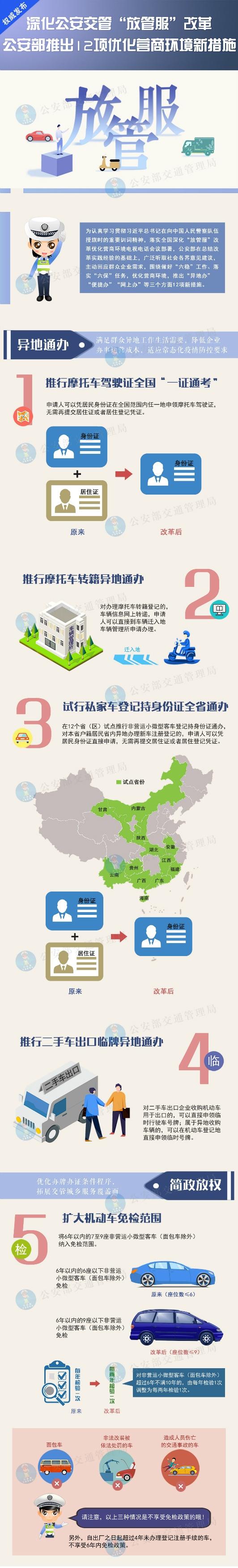 ——推行摩托车转籍异地通办,在已实行非营运小微型客车转籍档案网上转递的基础上,推行摩托车转籍信息网上转递,申请人可以直接到车辆迁入地车辆管理所申请办理,无需再回迁出地验车、提取纸质档案,减少面对面接触式办理。