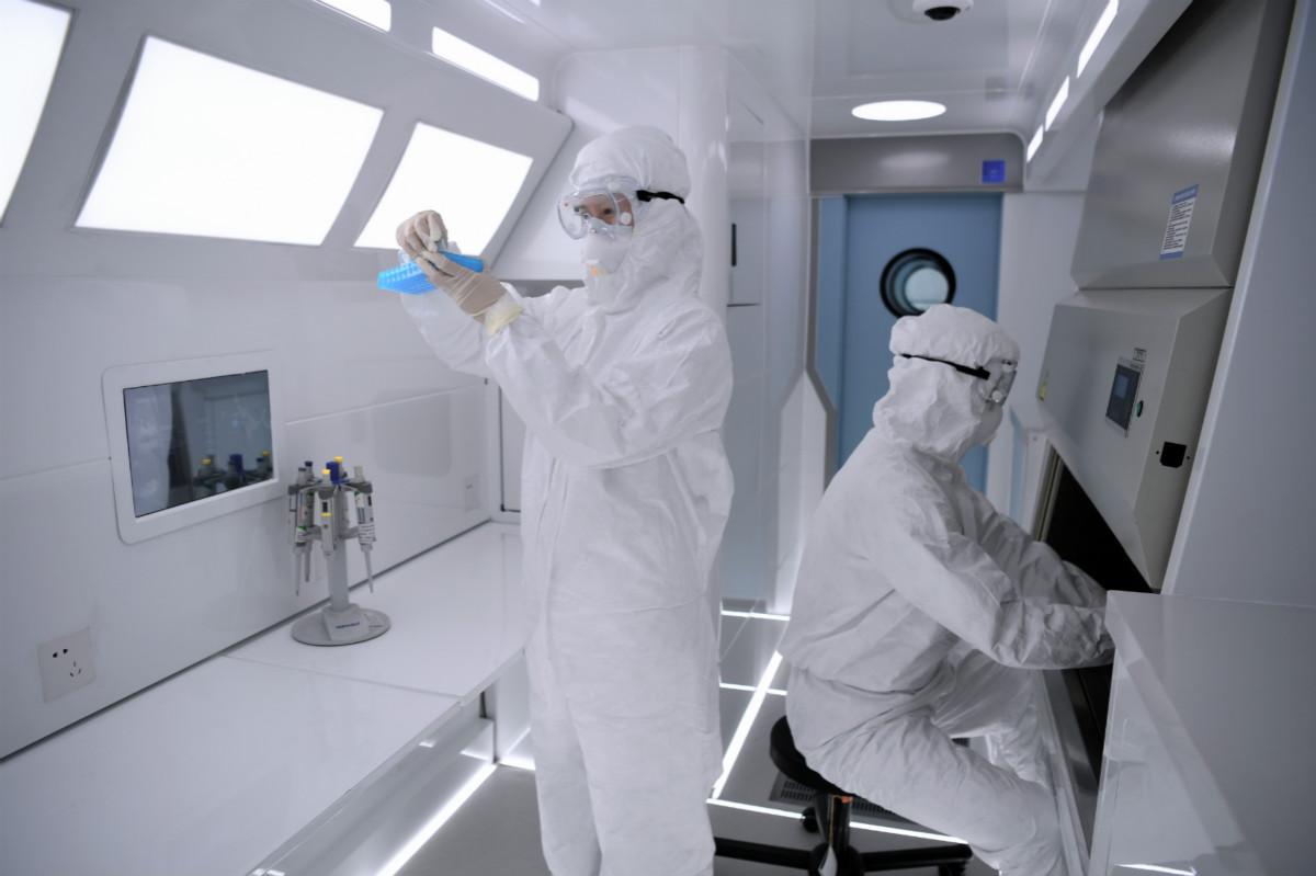 实验室设置标准按照不低于固定式P2实验室国家标准进行设计和建造,同时符合十余项国家实验室相关规范标准以及四项国际标准。车内各种高科技技术也随处可见,例如通过负压装置防止病毒外逸,保证环境安全;恒温恒湿保障各种精密仪器处于最佳工作状态,确保检测质量稳定可靠。