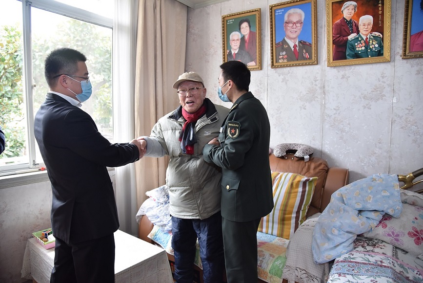 随后,大家来到参加过解放战争和抗美援朝的离休老干部宋茂华家中,以及参加过济南、淮海、渡江、解放上海等战役战斗,并参加过抗美援朝、荣立多项战功的离休老干部黄耀家中。