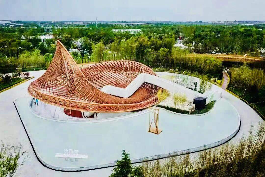 原来,从高空俯瞰,竹藤馆宛如一只竹藤编织而成的“茧”,其内里是由单层3D打印模板加喷射混凝土技术而成,这也是我国首次在建筑实践项目中使用该技术。