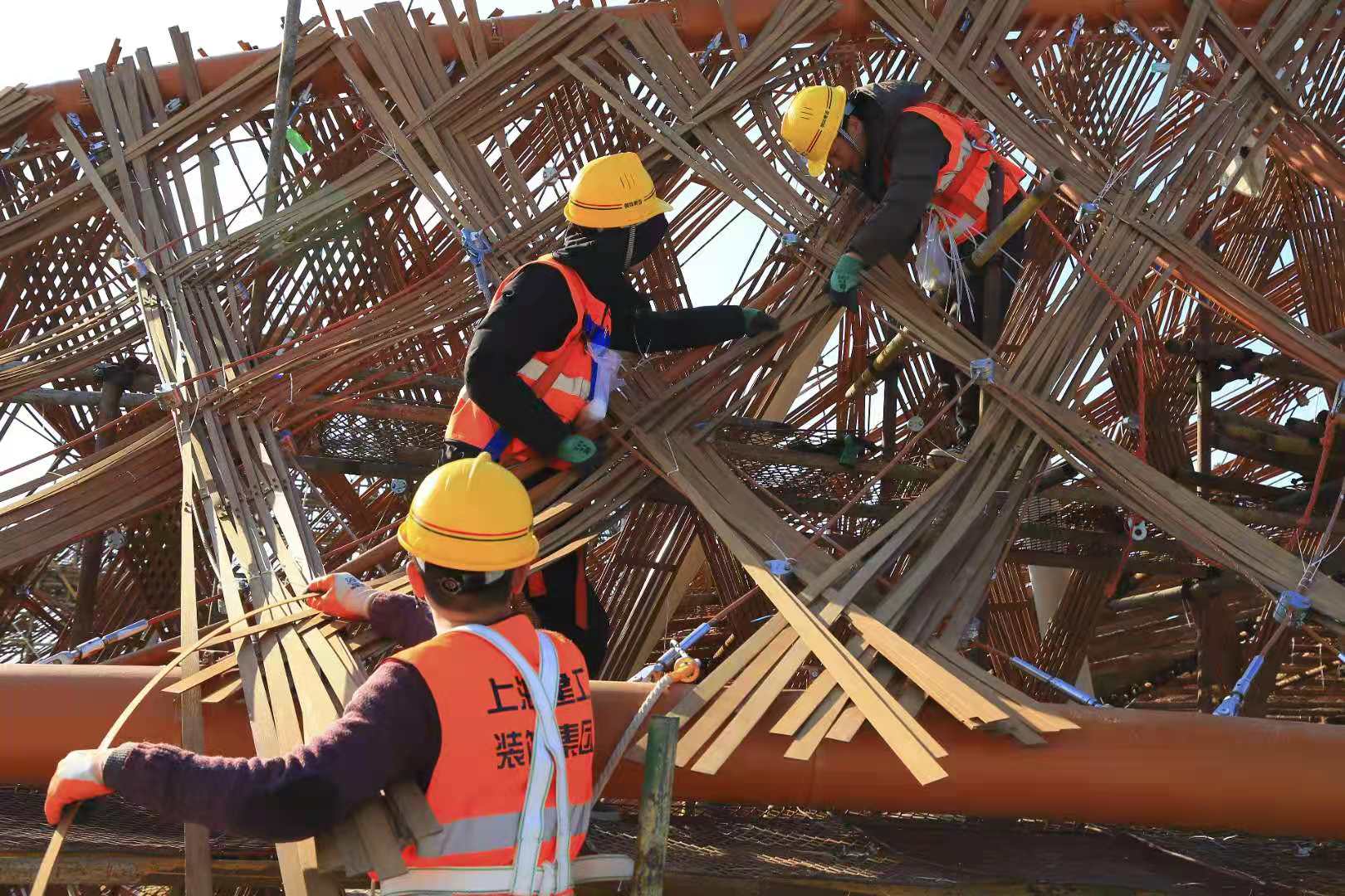 竹藤馆体量虽小,但是建筑工艺难度大,要求高。“现在回想起来,还是有点不敢相信,我们居然做到了。”在和记者聊起建设过程中的点点滴滴时,上海建工二建集团项目经理葛勇感慨万千。
