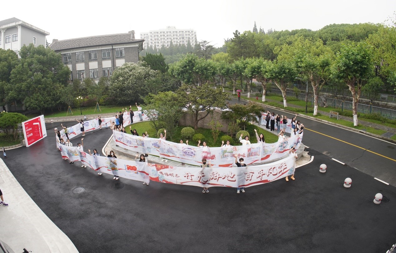 当天,艺术学院同时举办了“百名师生绘百幅画卷讲百年党史”主题活动。活动以120多米的画卷形式,通过“辉煌历程”“校史回眸”“花博百态”“深情寄语”四大板块,以艺术的手法描绘出中国共产党人的百年精神与当下人民的幸福生活。