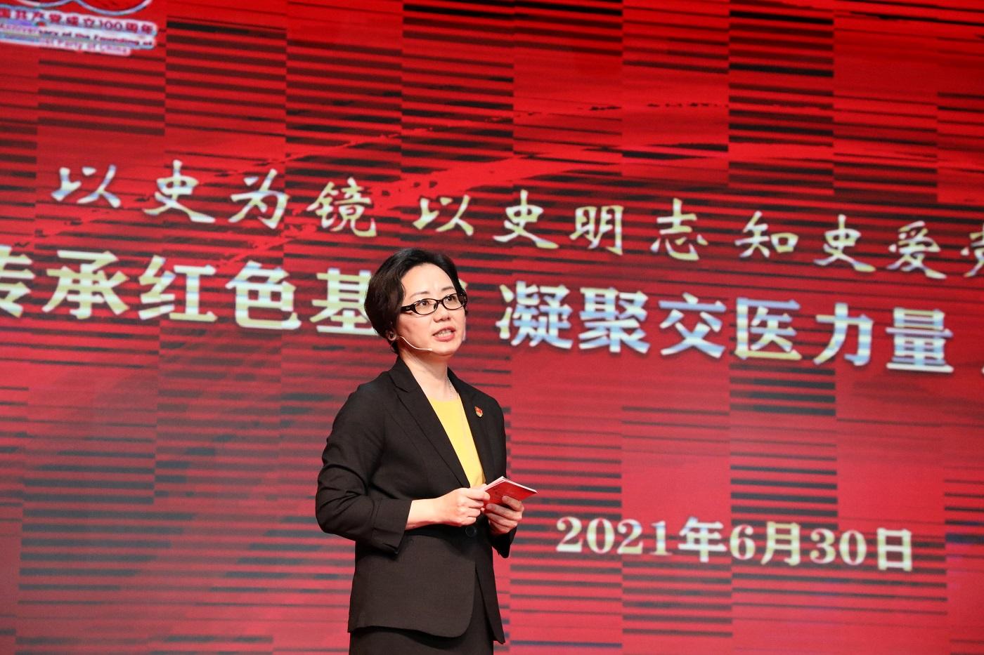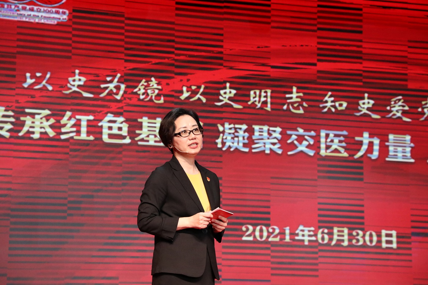 交大医学院党委书记江帆为大家上了一堂专题党课,带领大家共同翻开历史教科书,重温党的伟大历史,汲取力量,见证交医守护人民健康的医学华章。