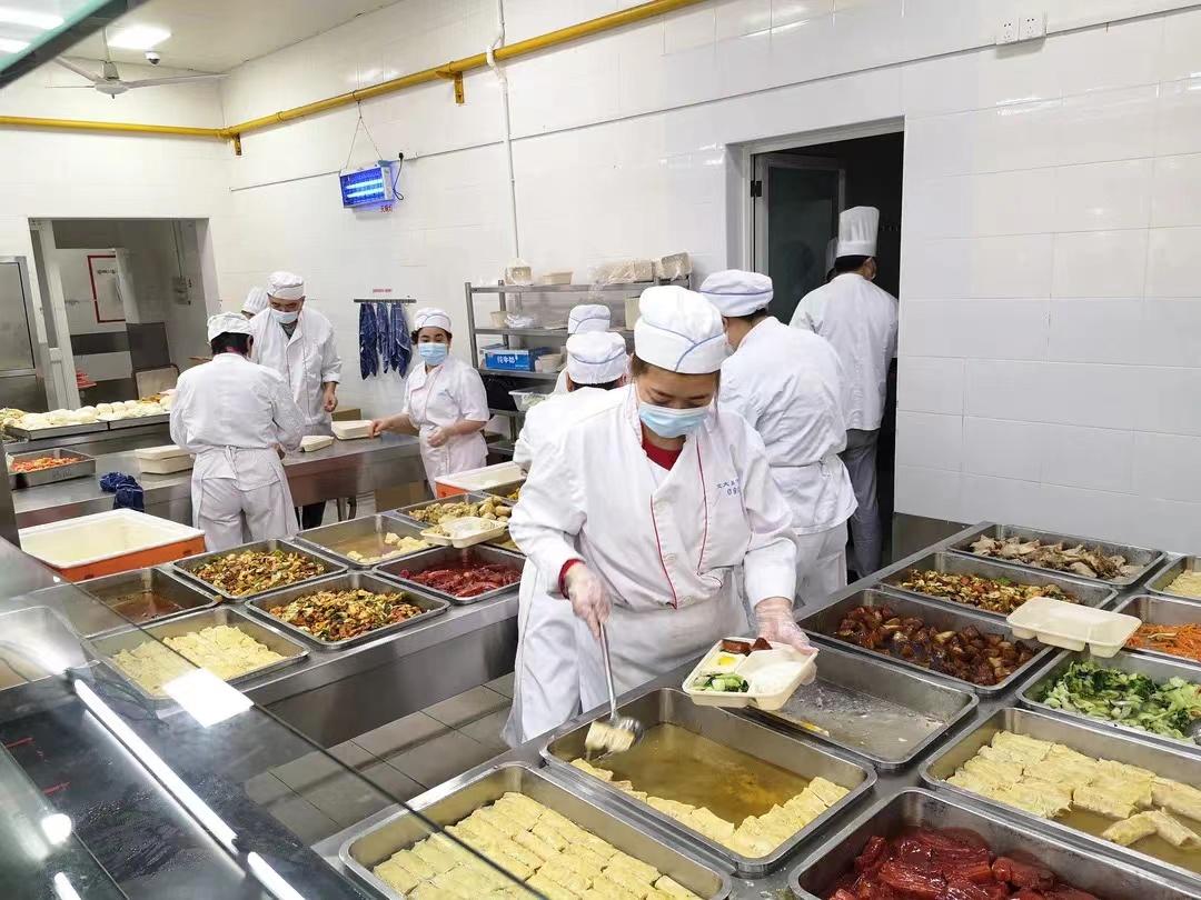 学校餐厅披星戴月地调配食材提供餐食↓↓↓