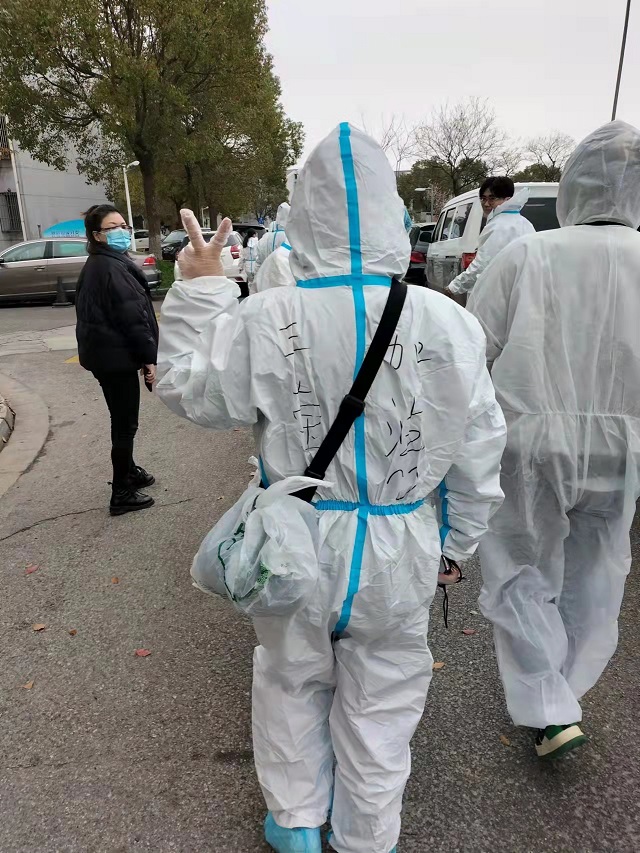 于是,当这次居住的小区被封控,她毫无犹豫的报名参加。小区里面都是本地居民,有时候碰到年纪大点的老百姓跟她讲本地话,沟通就显得有点困难,但是这个时候周边的志愿者会立刻过来帮忙,这也让她非常感动,于是趁空档的时候她也会请教自己的“战友们”一些本地方言的意思。