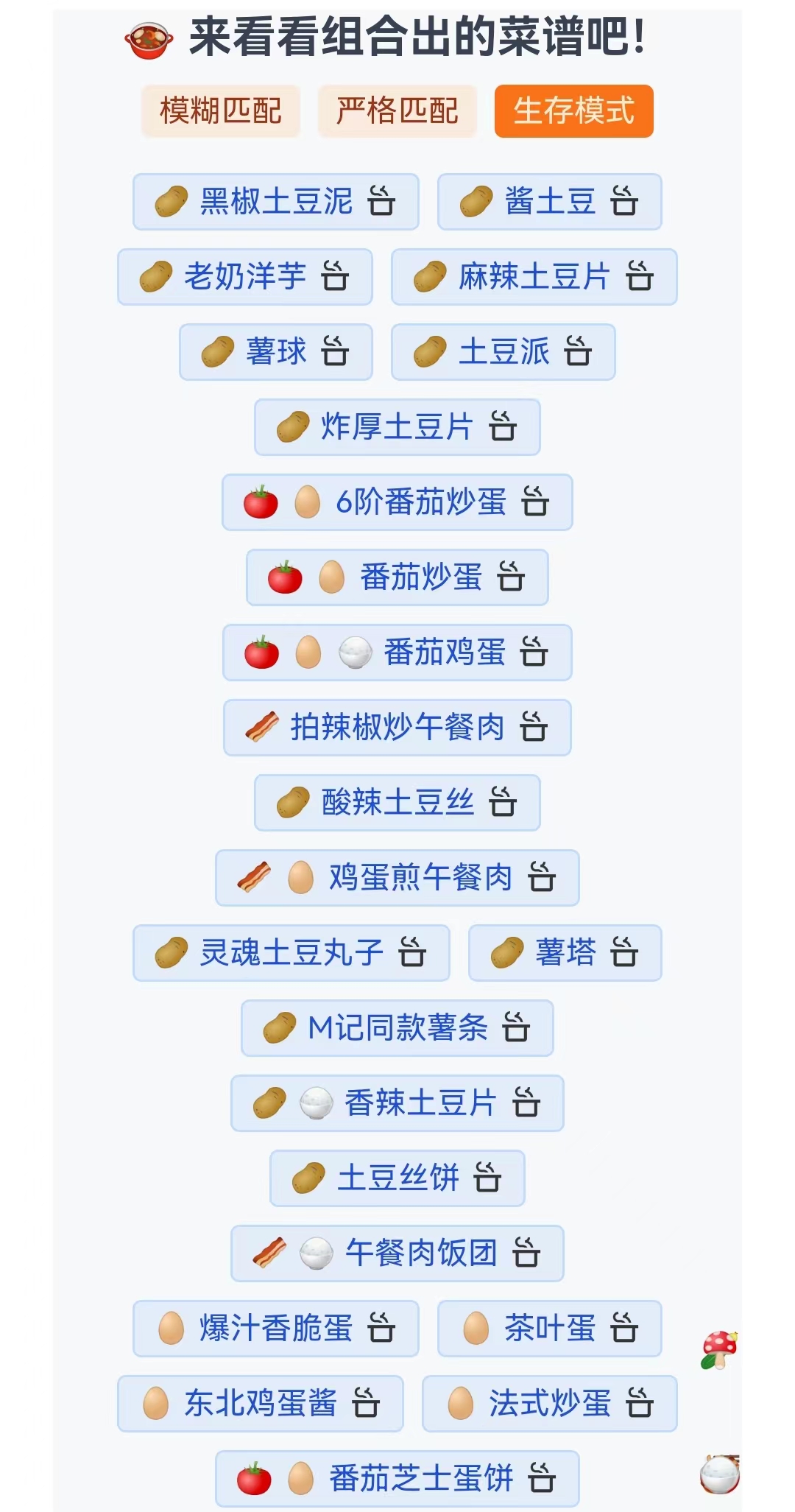 “云游君”告诉记者,这款小工具主要是想帮助因疫情隔离在家的人们,特别是一些平时很少下厨的新手,可以用有限的食材更快学会做更多美食。因此,从食材到厨具,再到菜品都精心挑选过,做菜视频也基本是简单版本,用户还可以根据需求选择模糊匹配、精准匹配或者生存模式。