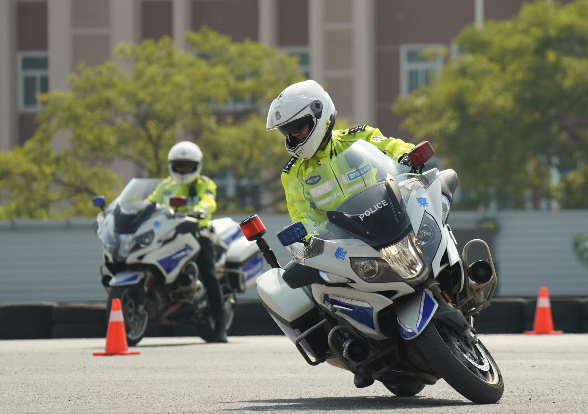 “看着很帅气吧,但要驾驭这些大家伙其实一点都不简单。”教官郑彬直言,“警用摩托车比一般的摩托车要重,大约有265公斤。”因此,在压弯、翻把及单手操控时,需要对油门、离合有精准的控制,才能将摩托车捋顺。