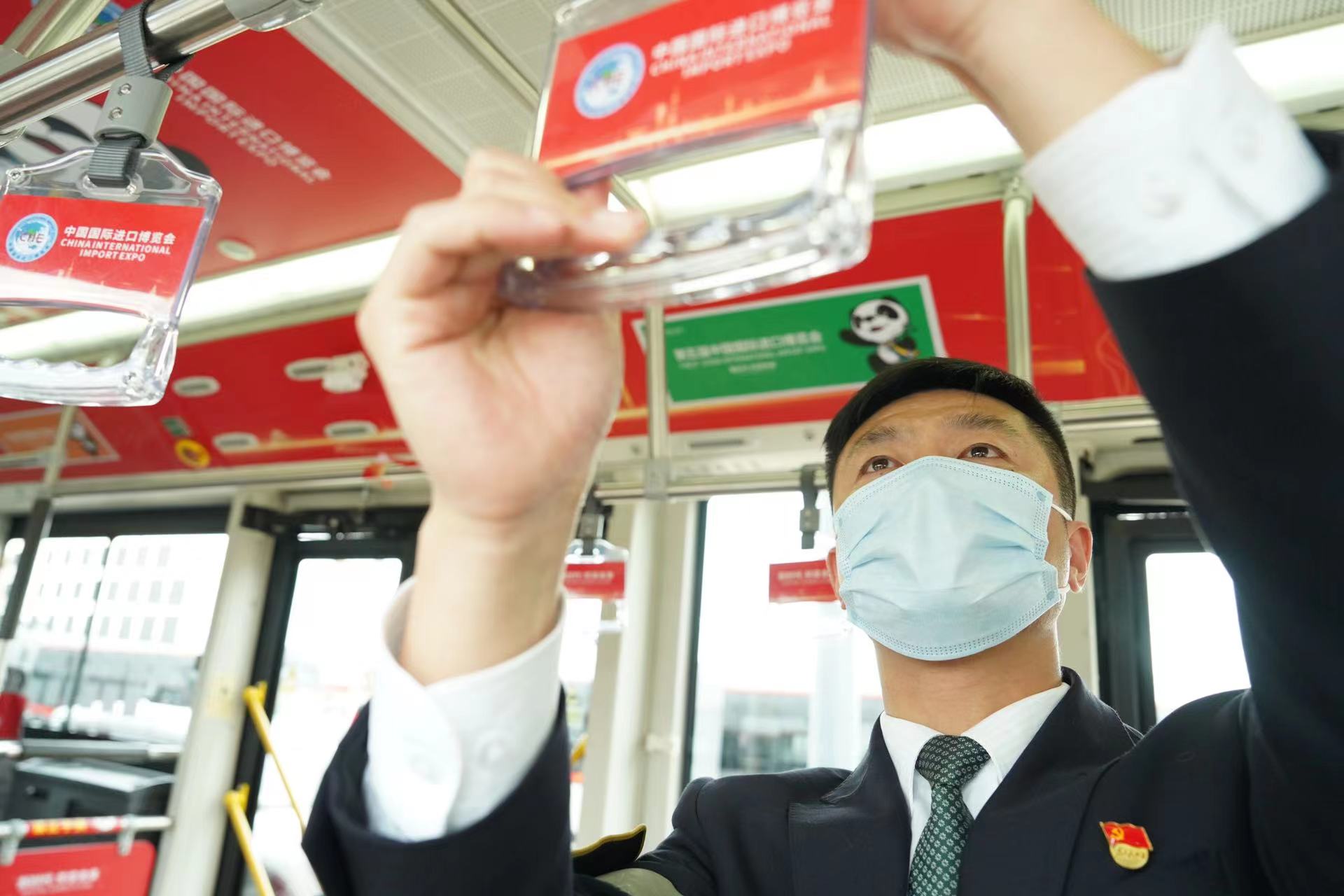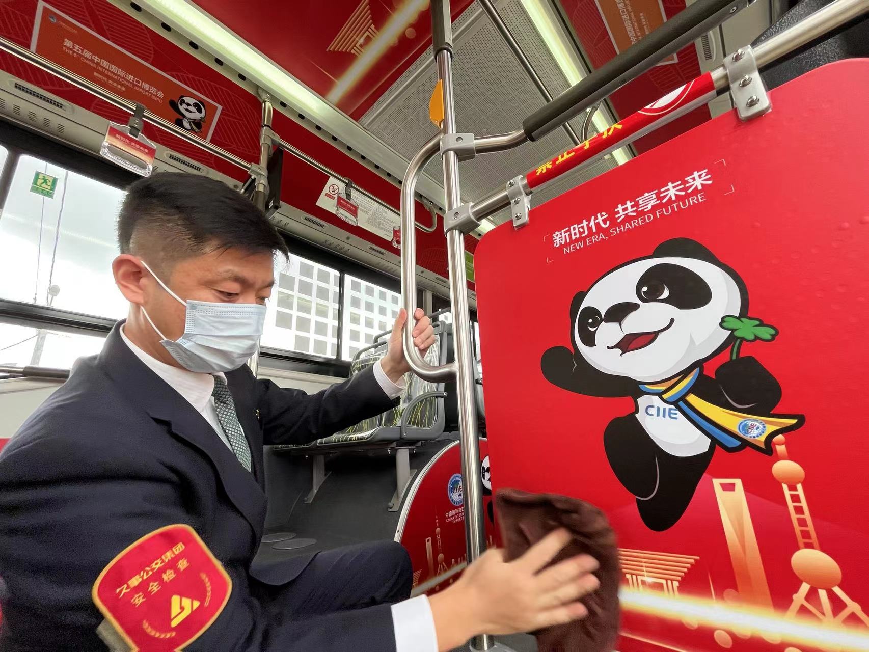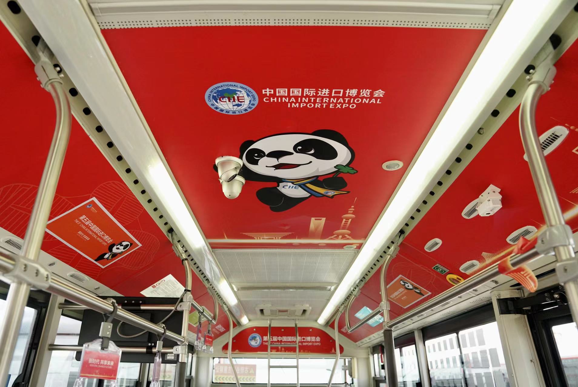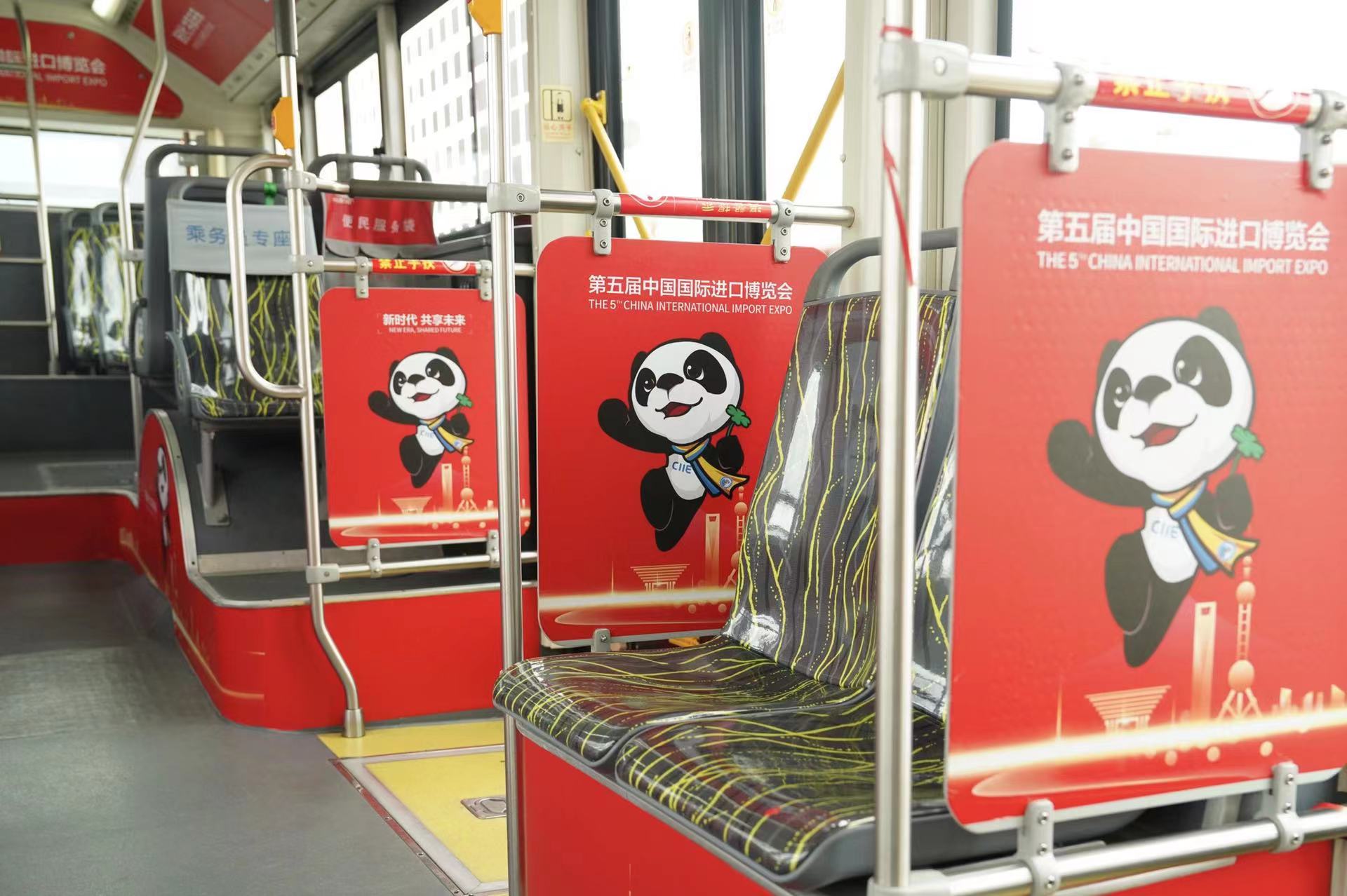 近日,中运量71路进博会主题专车亮相。专车以进博会吉祥物“进宝”为设计元素,对车厢整体进行全新的布置。进博会期间将为市民提供“一站式直达”服务。