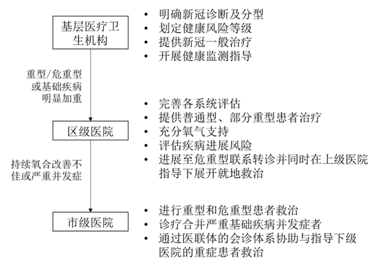当前,新冠病毒奥密克戎变异株在全球流行,我国也面临着疾病流行的巨大挑战。随着人群接种新冠疫苗覆盖率的逐步提高,对其传播力增强和致病性降低认识不断加深。临床认识到早期规范化治疗的重要性,特别是抓住脆弱群体感染后的早期救治时间段,给予抗病毒与抗炎症治疗,将显著降低新冠病毒感染的重症率与病死率。上海市新型冠状病毒病临床救治专家组协同国家传染病医学中心在国家卫健委《新型冠状病毒肺炎诊疗方案(试行第九版)》基础上,一起重新编写了《2022版上海市新型冠状病毒感染诊治规范与分级诊疗流程》(基层医疗机构应急使用简版),以期能对各级医疗机构和医生在具体病例分级管理和诊疗中提供参考和指导。