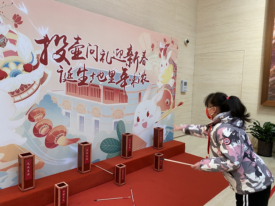 工作人员告诉记者,投壶游戏的背后体现的是古人尚礼的精神,观众通过投壶活动,可以感受传统文化魅力,学好党史必修课,获得参与感、获得感和满足感。