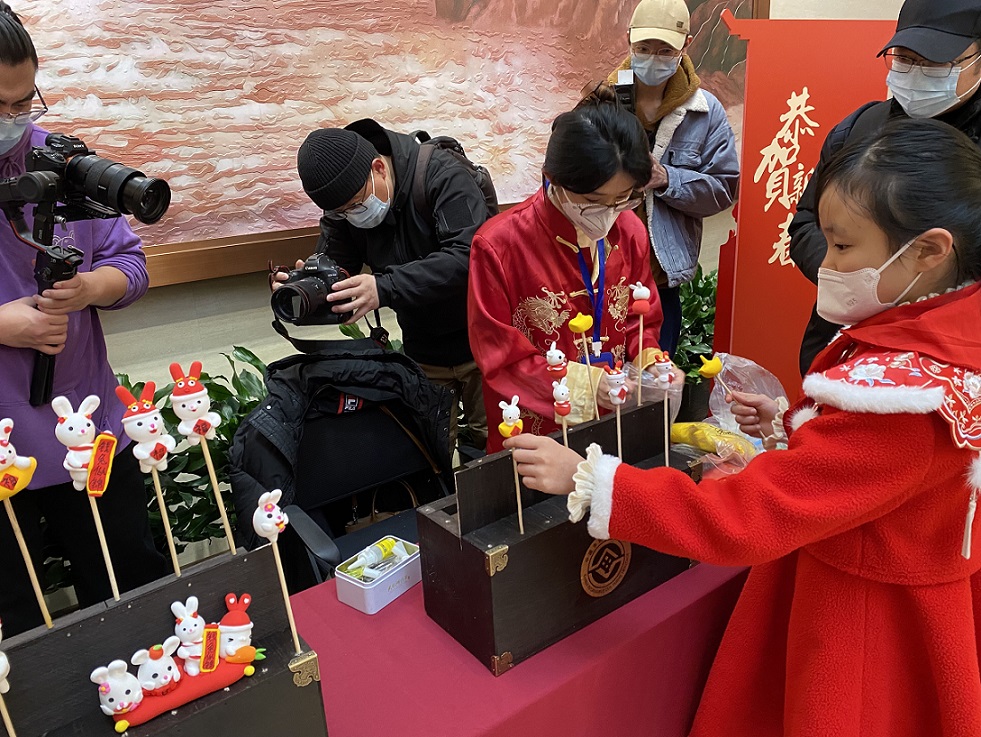 记者在现场看到,进入纪念馆大门的第一个新春活动项目——“兔”然遇到你,诞生地非遗体验,格外受到小朋友们的青睐,因为这里可以参与体验非遗技艺捏面塑。