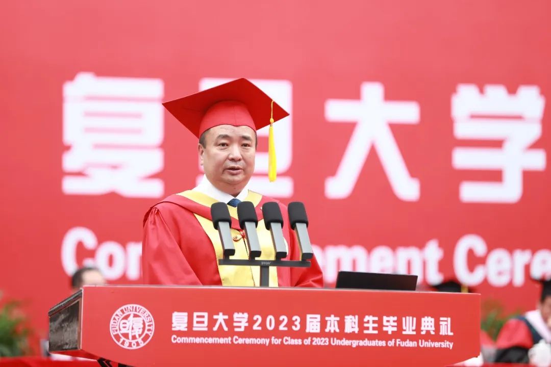他勉励毕业生们,做一个发现兴趣,找到热爱,勤奋坚持的人。做一个务实求真,理性质疑,大胆创新的人。实现成就需要具备丰富的想象力、创新意识、求真精神和质疑精神,要养成问问题、问为什么的习惯,做出创新工作。做一个传承复旦精神,勇于奉献的人。带着复旦精神烙印,心中有理想,脚下有泥土,将社会责任与个人志趣相结合,找到属于自己的人生意义。