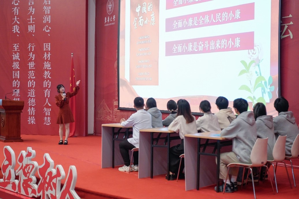 主题班会如何突出思想性、主题性和教育性?如何更好地发挥主题班会的育人功能?聚焦“中国系列”主题和校本素材,辅导员“新秀”以说课和示范主题班会的形式进行现场展示。上海中医药大学张晴、东华大学彭湘陵、同济大学刘博分别以《文化强国路上的中医药担当》《45度人生,开启另一种可能——关于新时代青年奋斗精神的熔铸》《弘扬科学家精神,扣好研究生的第一粒扣子—新学期第一堂主题班会课》进行说课展示。