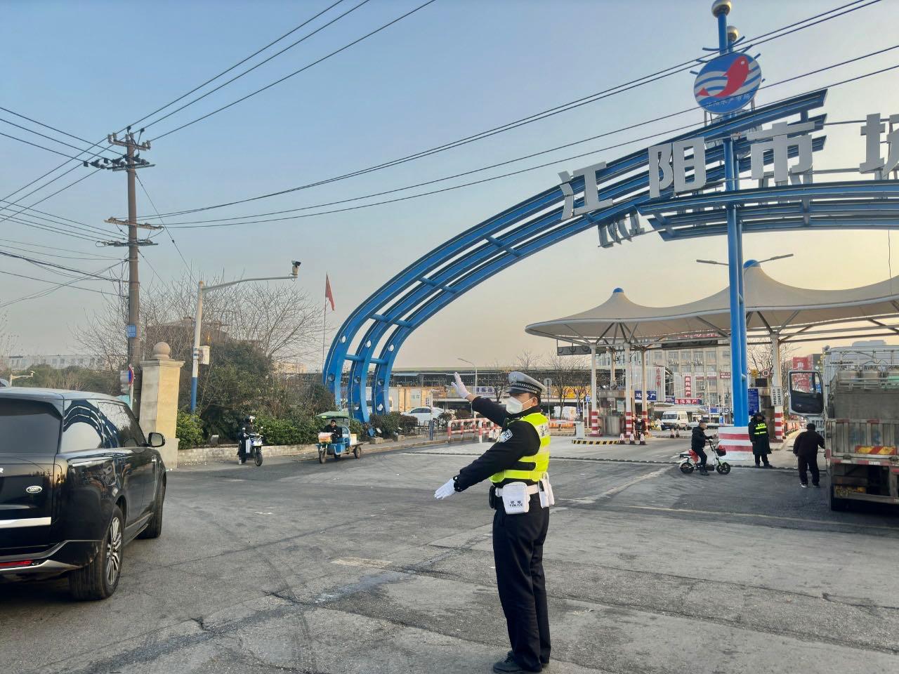 民警在市场门口疏导车流确保通行率。警方供图