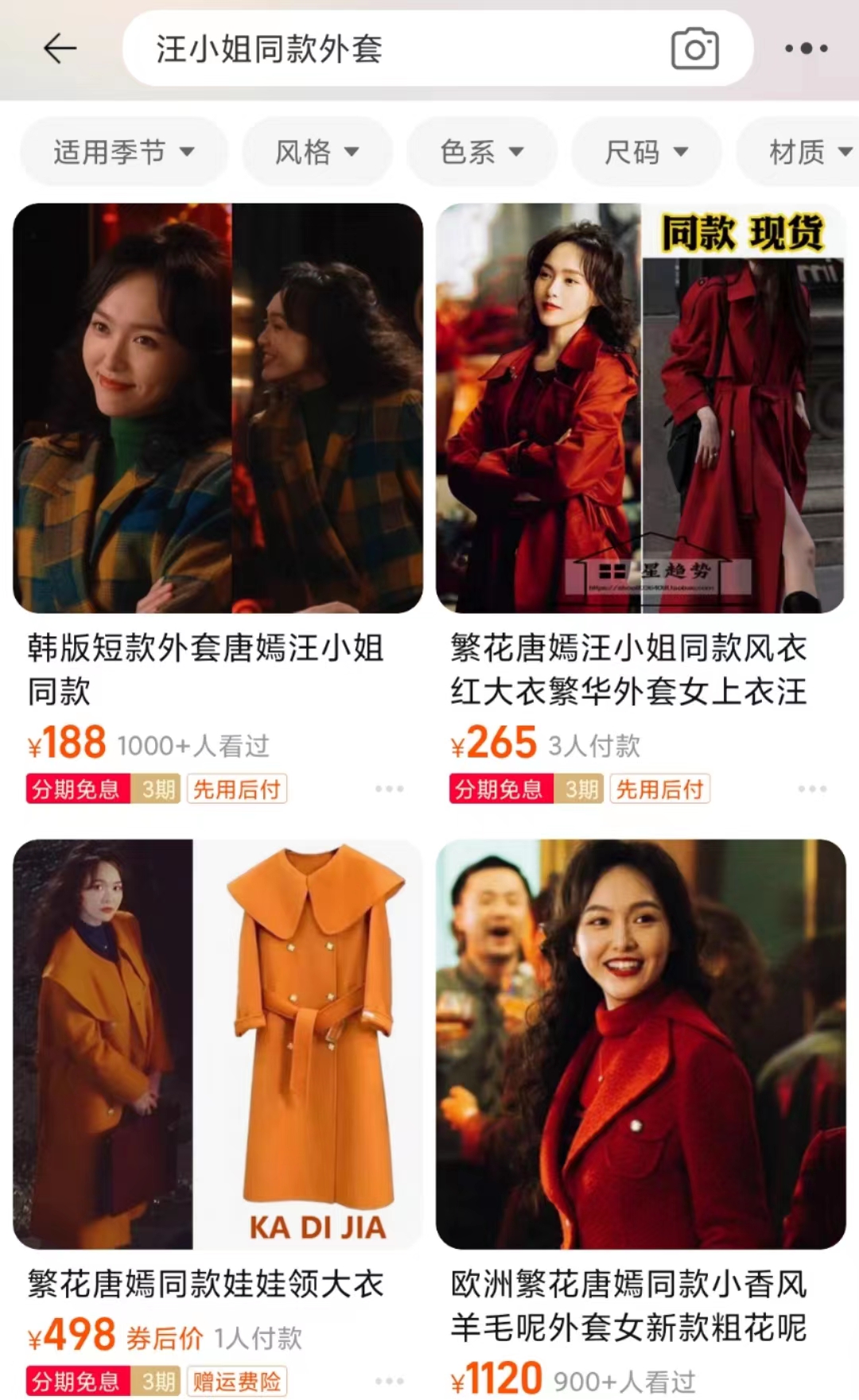 部分淘宝店家在商品标题里标注“汪小姐同款”等字眼。图源 淘宝截图