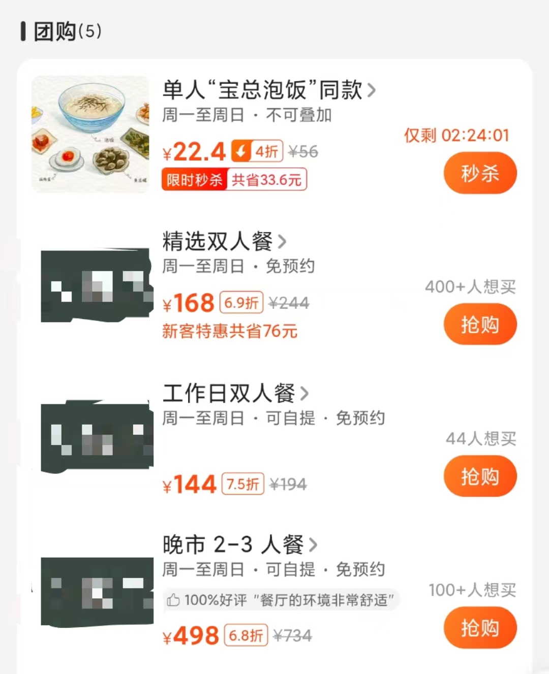 某餐厅借称套餐为“宝总泡饭”同款但未使用剧照截图。图源 美团