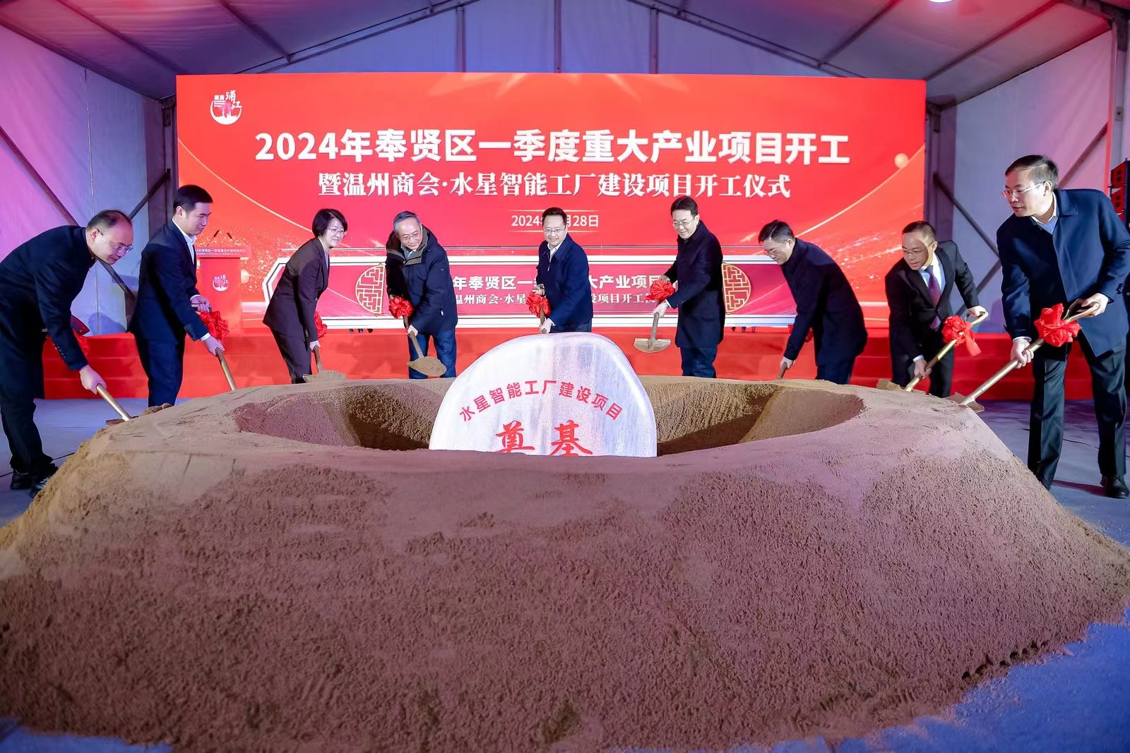 2月28日上午,2024年奉贤区一季度重大产业项目开工暨温州商会·水星智能工厂建设项目开工仪式在位于西渡街道的水星智能工厂项目工地举行。本次开工仪式共启动项目26项,计划总投资124亿元。其中包括生物医药、数字经济、汽车、新材料等先导产业和新赛道产业。项目达产后预计实现年产值1389亿元,年税收157亿元。
