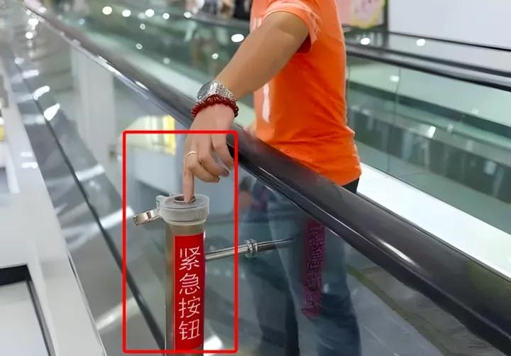 大型扶梯中部的紧急按钮。图片来源:上观新闻