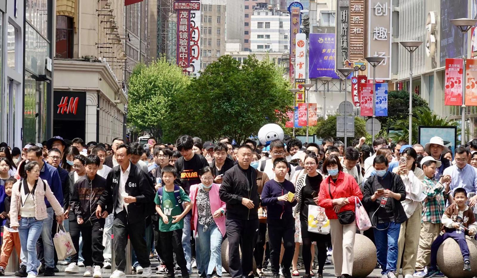 头图为南京路步行街人气旺。劳动报记者 贡俊祺 摄影