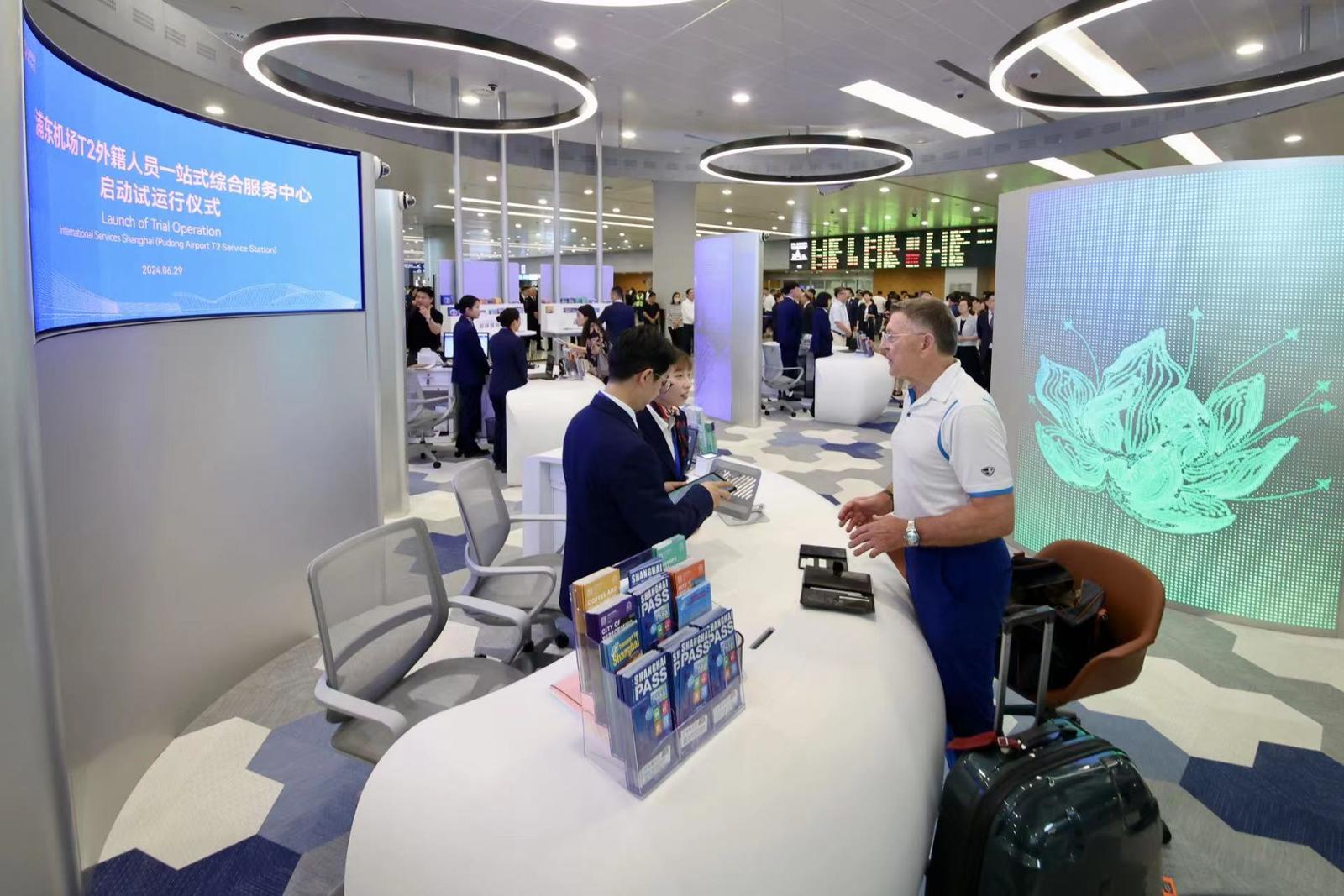 据悉,继浦东机场T2航站楼一站式综合服务中心建成使用后,浦东机场Tl航站楼和虹桥机场Tl航站楼外籍人员一站式综合服务中心计划于10月建成投用。