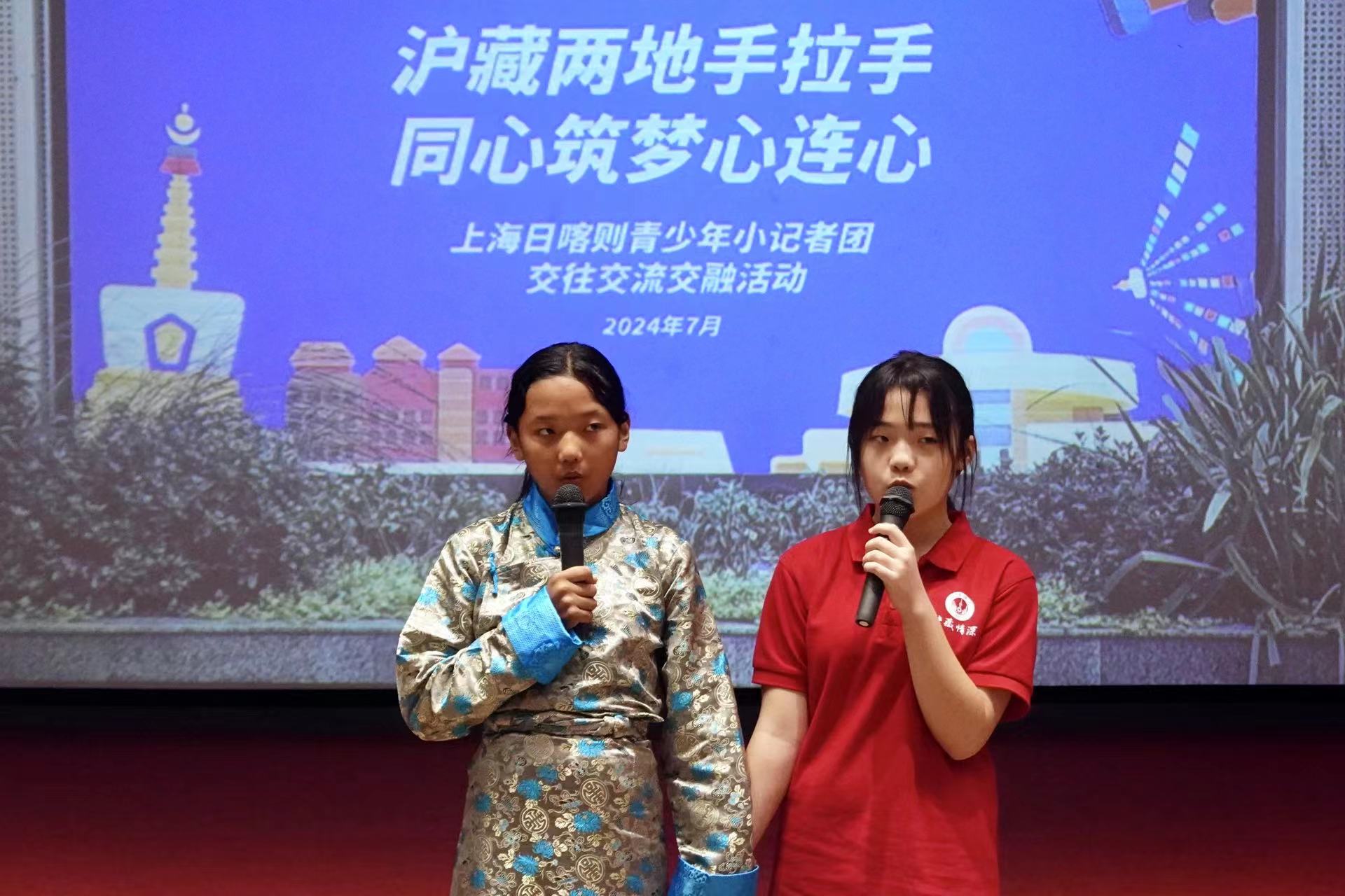 7月26日至8月1日,“沪藏两地手拉手 同心筑梦心连心”上海日喀则青少年小记者团交往交流交融活动举办。沪藏两地青少年通过“沪藏手拉手”活动采访援藏干部、援藏干部子女、西部计划志愿者等代表,亲身感悟、弘扬援藏精神,续写“民族团结一家亲”的少年篇章。8月1日,沪藏两地青少年迎来了此行的闭营式暨联欢会,共同展示研学成果。
