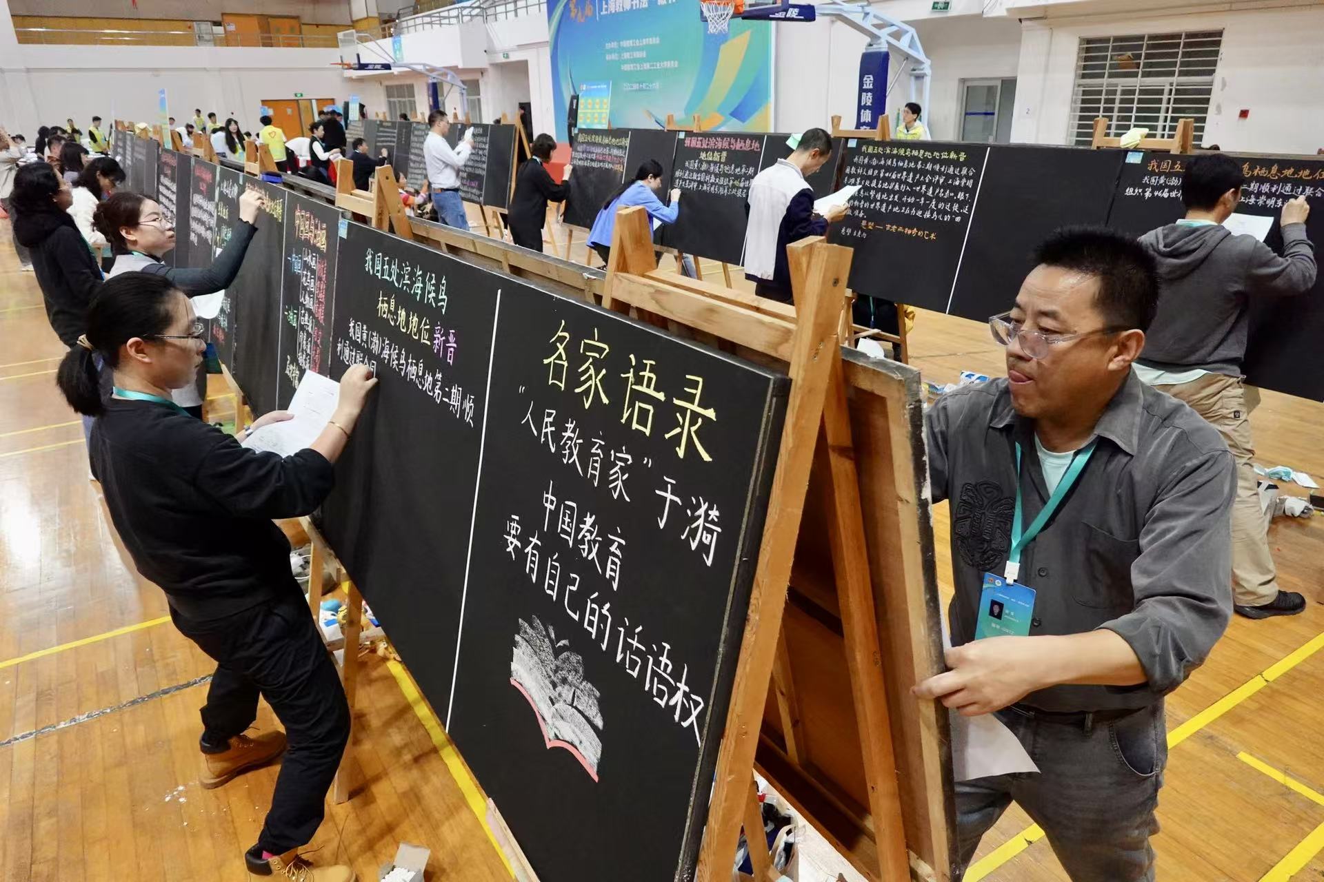 头图为第九届上海教师书法·板书·钢笔字大赛现场。