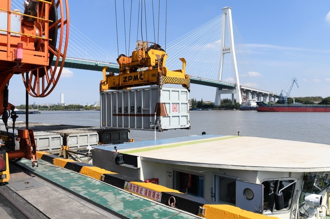 装进集装箱的垃圾会走水路,一路被运输到上海老港生态环保基地。别小看这个只有2万平方米的徐浦基地,如今,这里的水运日均中转量已经达到了3300吨。