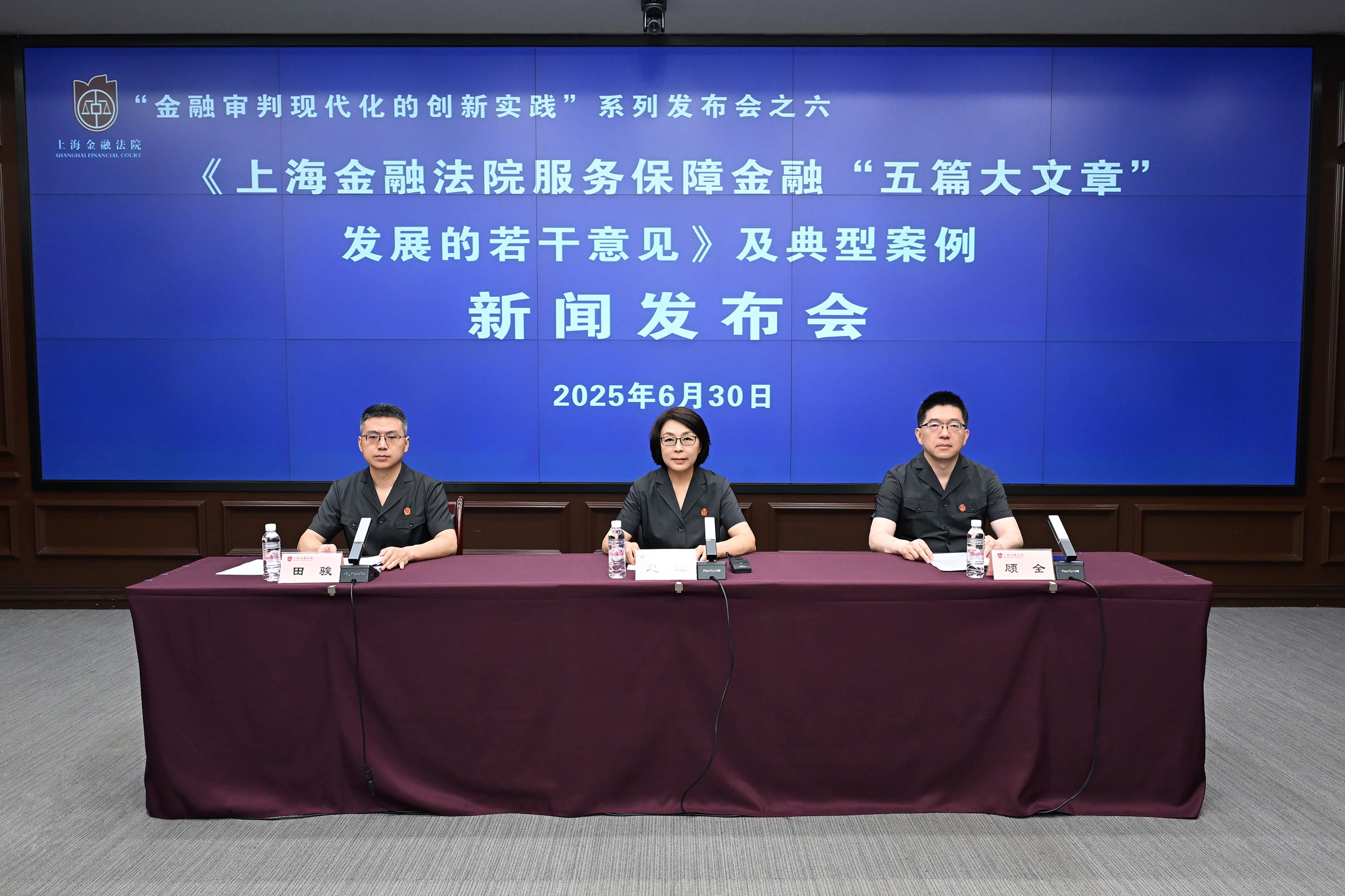 6月30日,上海金融法院举行新闻发布会,发布《上海金融法院服务保障金融“五篇大文章”发展的若干意见》(以下简称“《若干意见》”)及服务保障金融“五篇大文章”典型案例(以下简称“典型案例”)。
