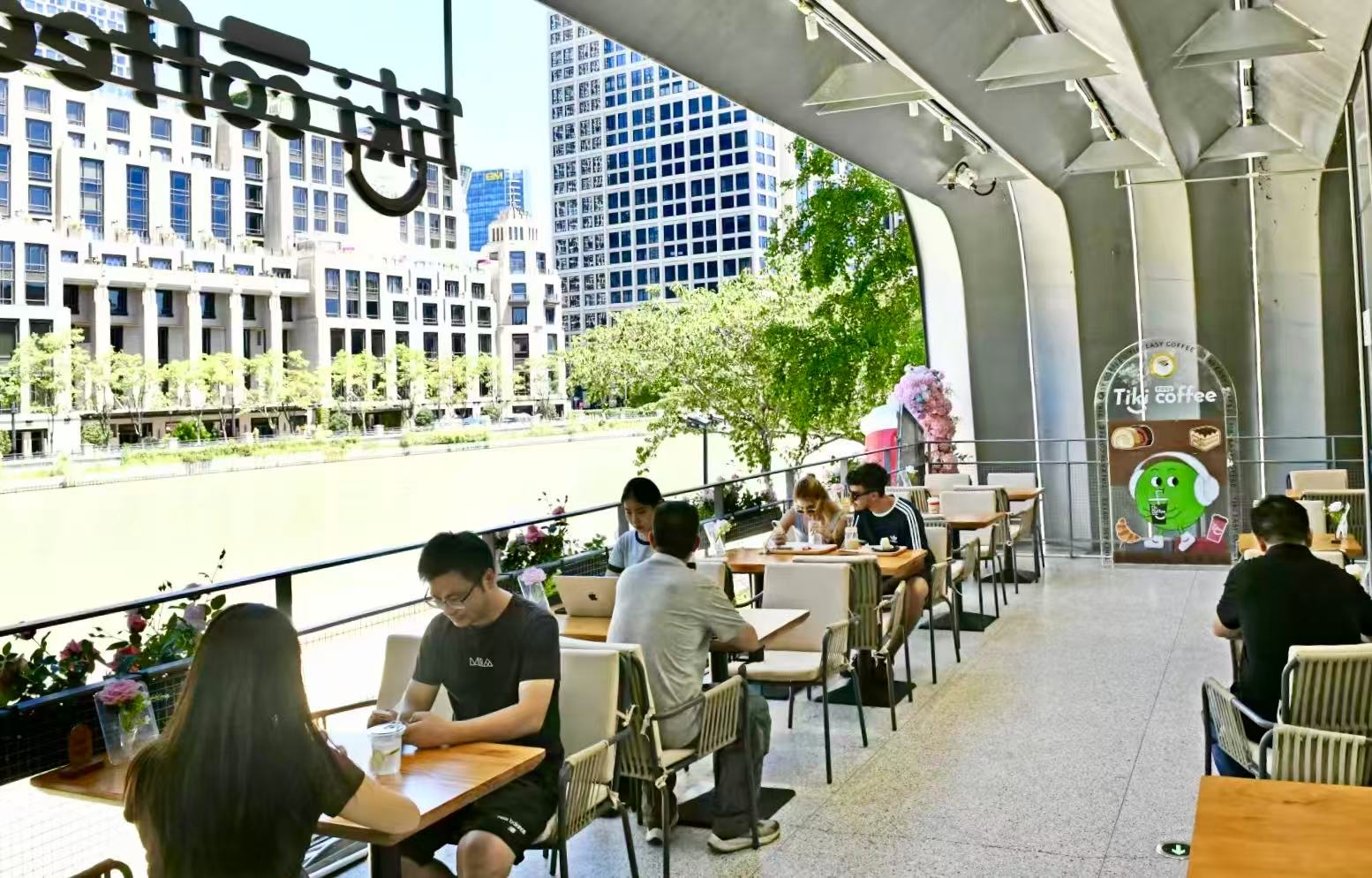 头图为在苏州河畔品尝咖啡享受美景。劳动报记者 贡俊祺 摄影