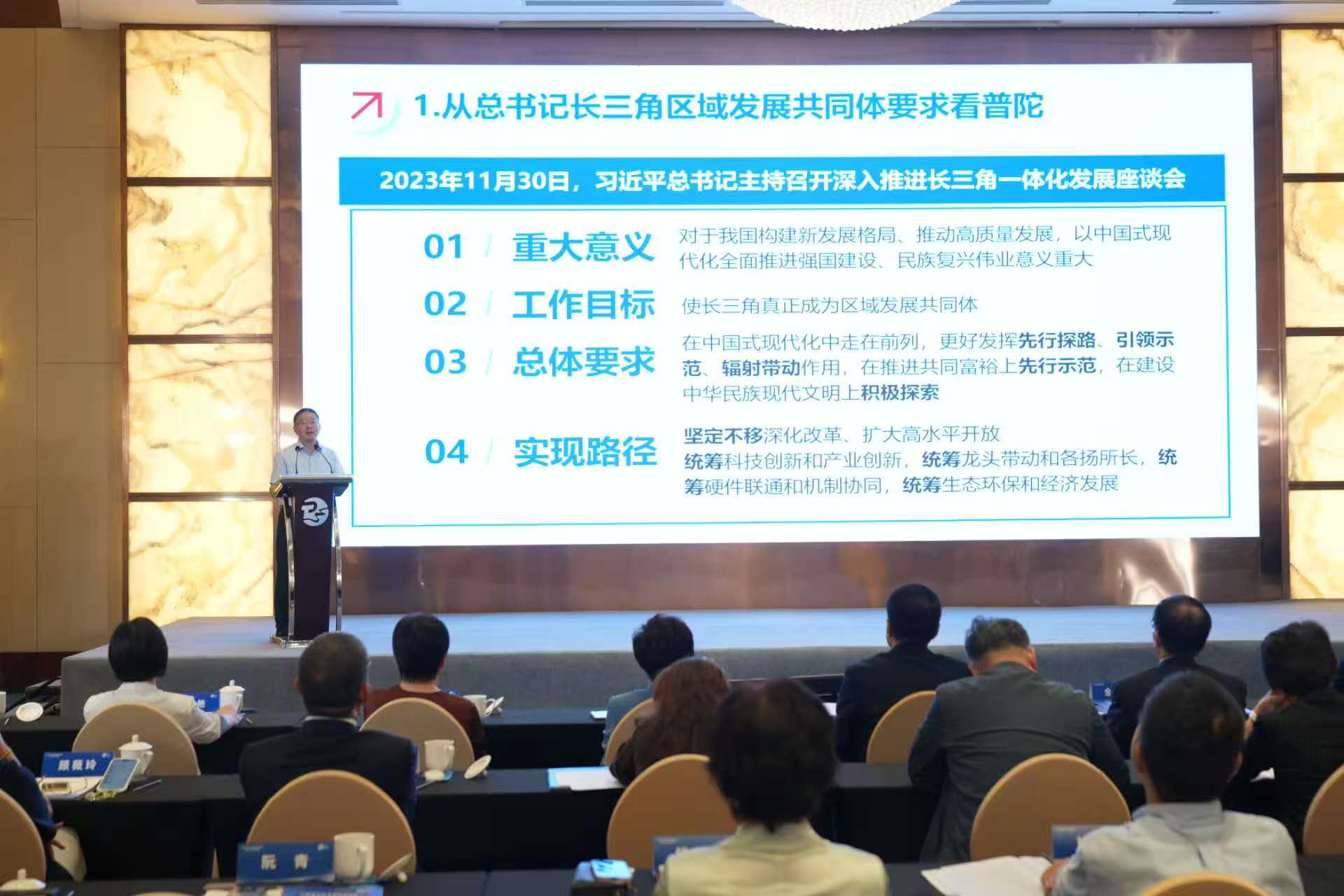 论坛现场,普陀区政协副主席翁华建代表区政协发布2025年重点课题《以沿沪宁产业创新带为牵引,聚焦打造千亿产业集群,着力强化重点产业科创引擎》研究成果。