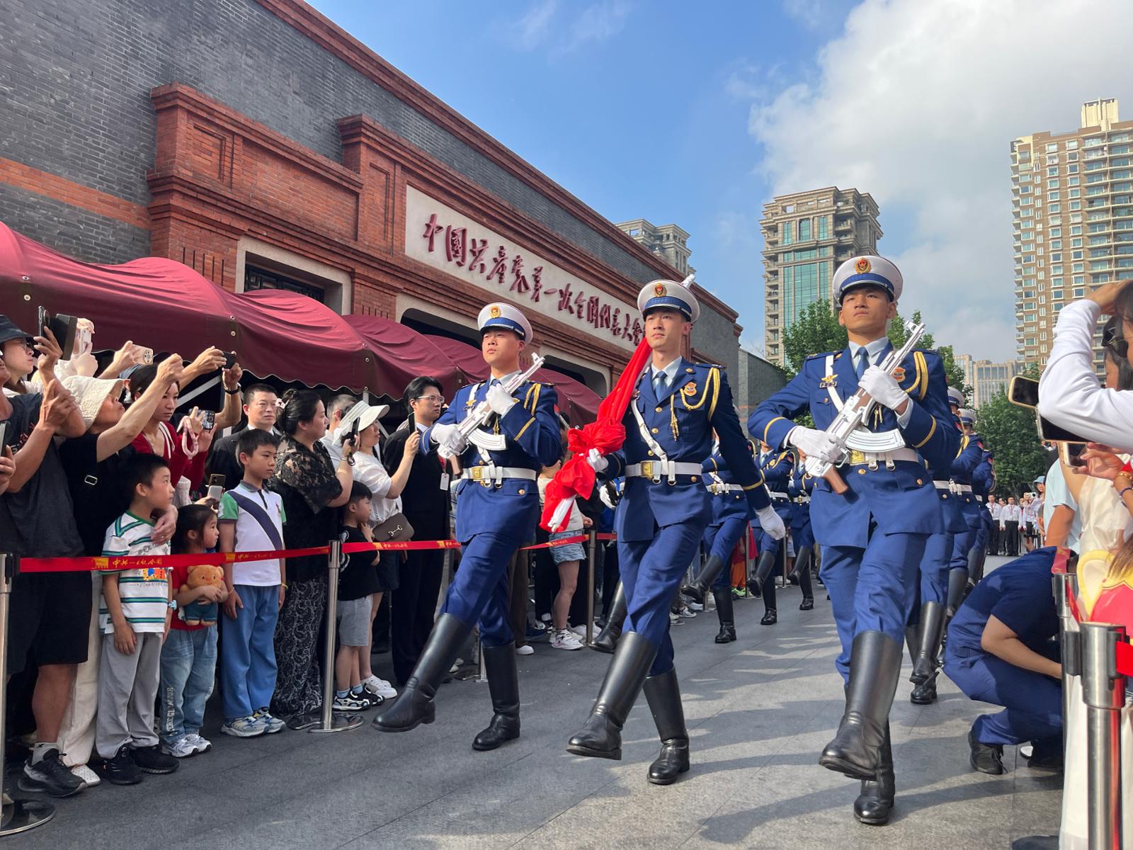 国旗护卫队从中共一大纪念馆门前走过。劳动报记者贡俊祺 摄影