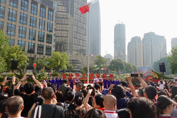 升旗仪式结束后,来自上海青浦区协和双语学校的师生们合唱了《今天是你的生日,中国》。中外籍师生同台献艺,展现了新时代中国的开放包容与文化自信;中共一大纪念馆青年职工和志愿者们通过诗朗诵《青春旗飘扬》展现了新时代青年的责任担当;情景朗诵《丹心宣言》以铿锵有力的语言,深情讴歌了革命先辈的赤诚之心。