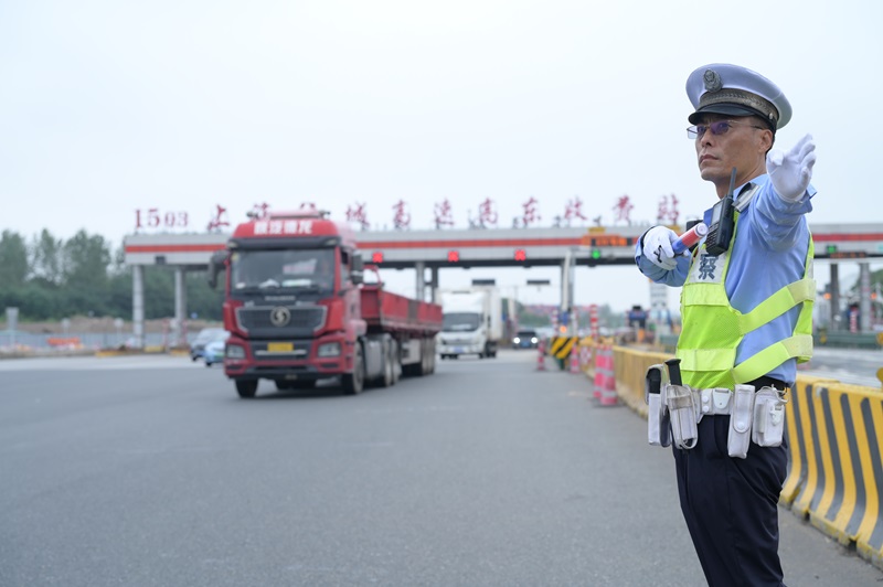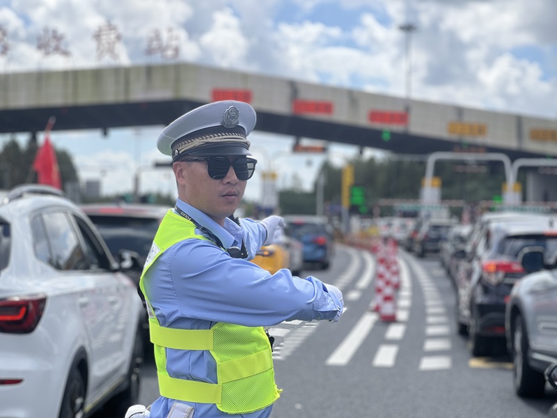 10月7日9时许,浦东公安分局多名警力已驻守G1503高东收费站,全力开展返程车流疏导工作。民警手持指挥棒穿梭于车流间,以高效引导稳住通行节奏。尽管现场受返程高峰影响偶有车辆缓行,但在民警的实时调度下,整体通行秩序始终平稳有序。
