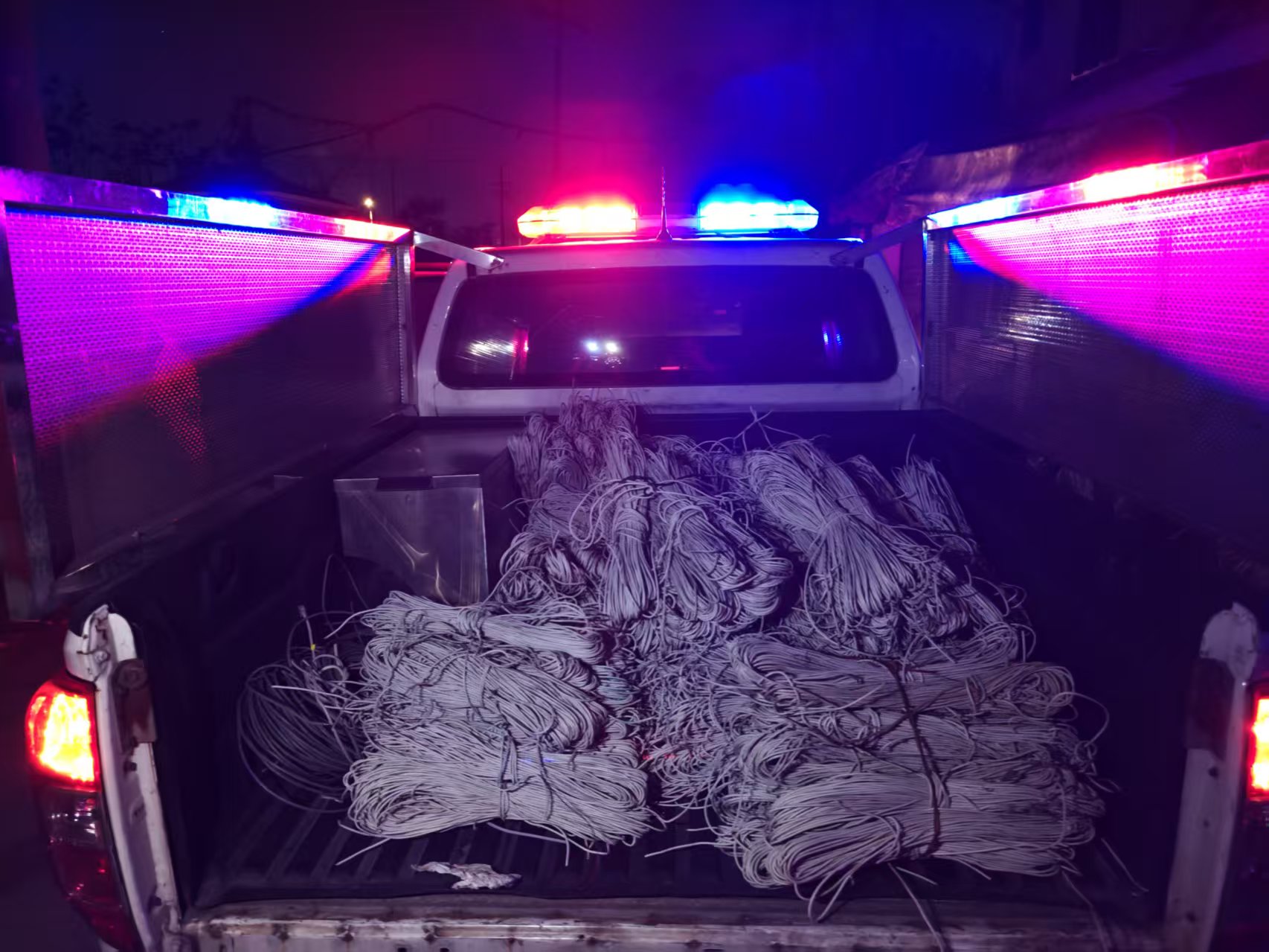 头图为警方查获的被偷盗的通信线缆。警方供图