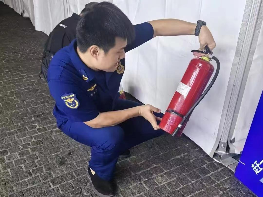 演出前夕,消防人员正在对场地进行消防安全检查。黄浦消防供图