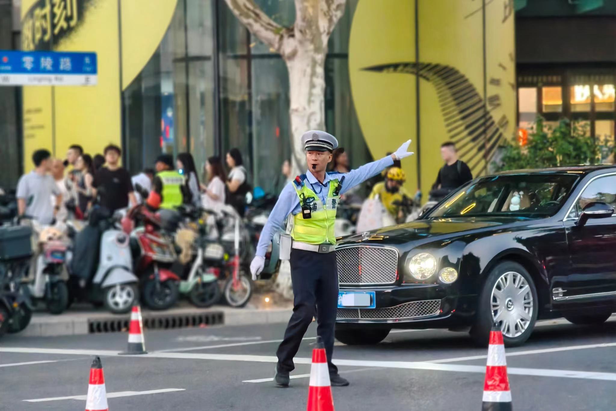 周杰伦在沪演唱会期间,民警正在路口展开临时管控措施。徐汇警方供图
