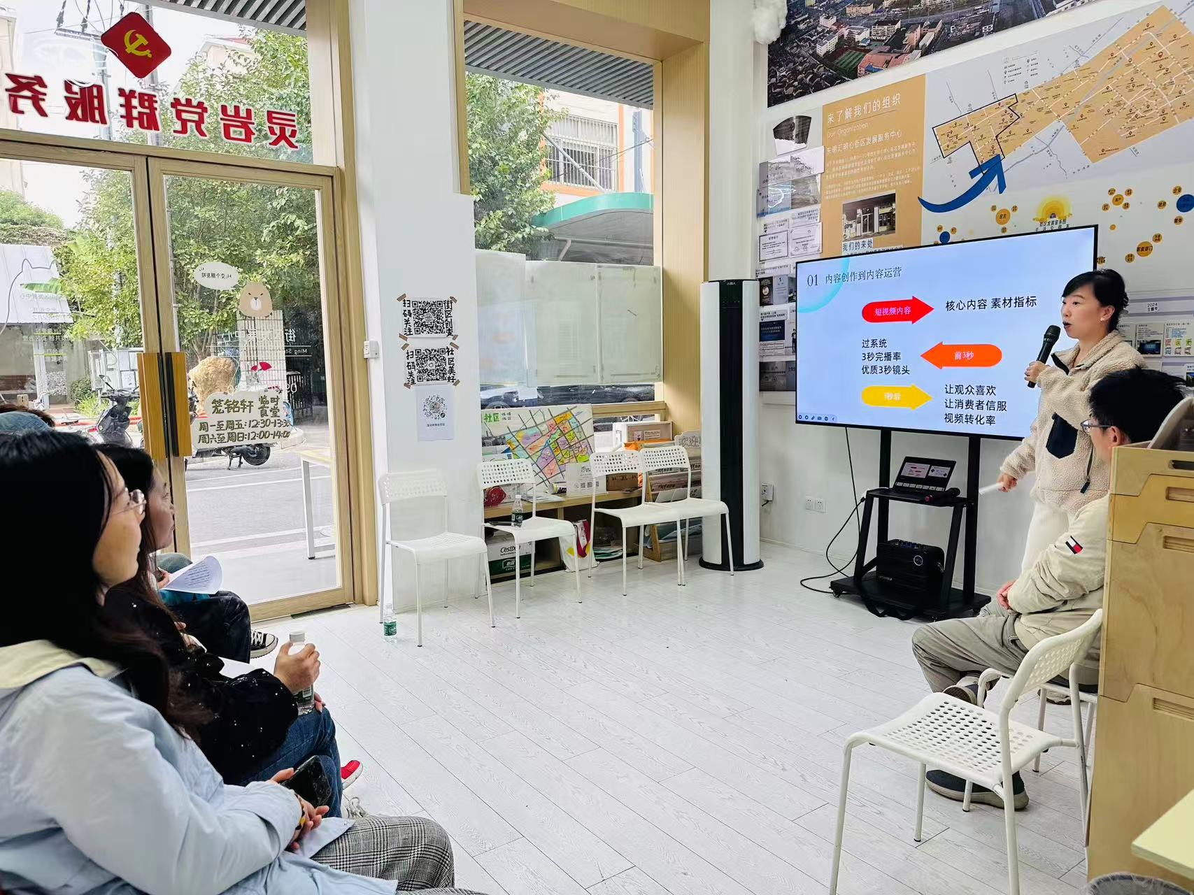 活动中,来自东方购物的专家介绍了私域团购领域的选品逻辑,帮助大家具备一双善于发现爆款的火眼金睛;社区里的媒体社创达人分享了知名栏目背后的账号运营技巧,强调内容垂直性与用户互动的重要性。特别是上海青年夜校网络营销师培训专家、电子商务师高级技师宋海娟的分享,为东明社创达人们深入解析了这一热门技能补贴项目的通关秘籍以及作为网络营销师在实战中所要具备的种种技能,引得现场社创青年们积极参与提问,就流量获取、转化路径等实操难题展开交流。
