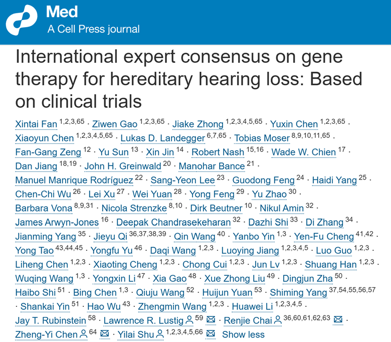 头图为遗传性耳聋基因治疗国际专家共识在Med发表。院方供图