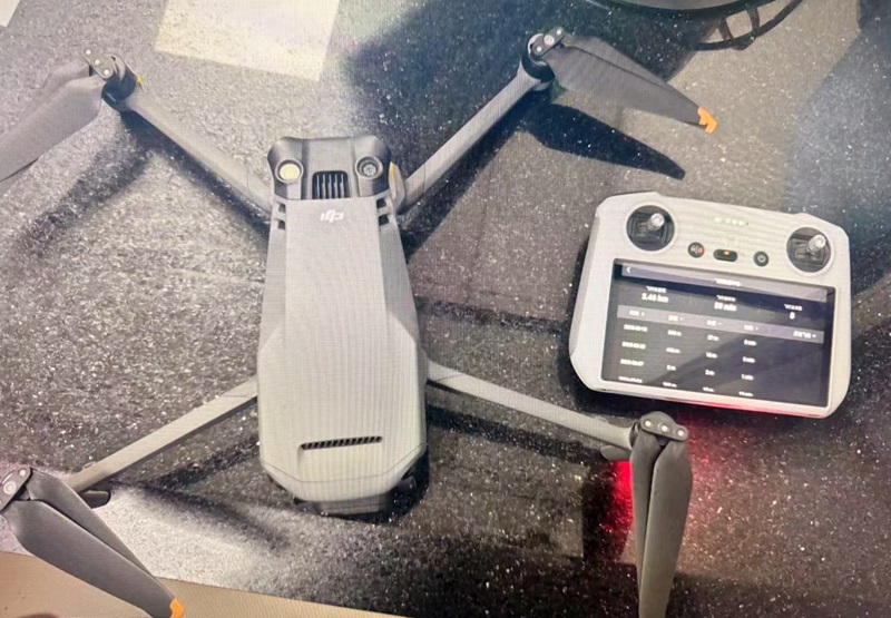 头图为民警查获的丁某某违规操作的无人机。警方供图
