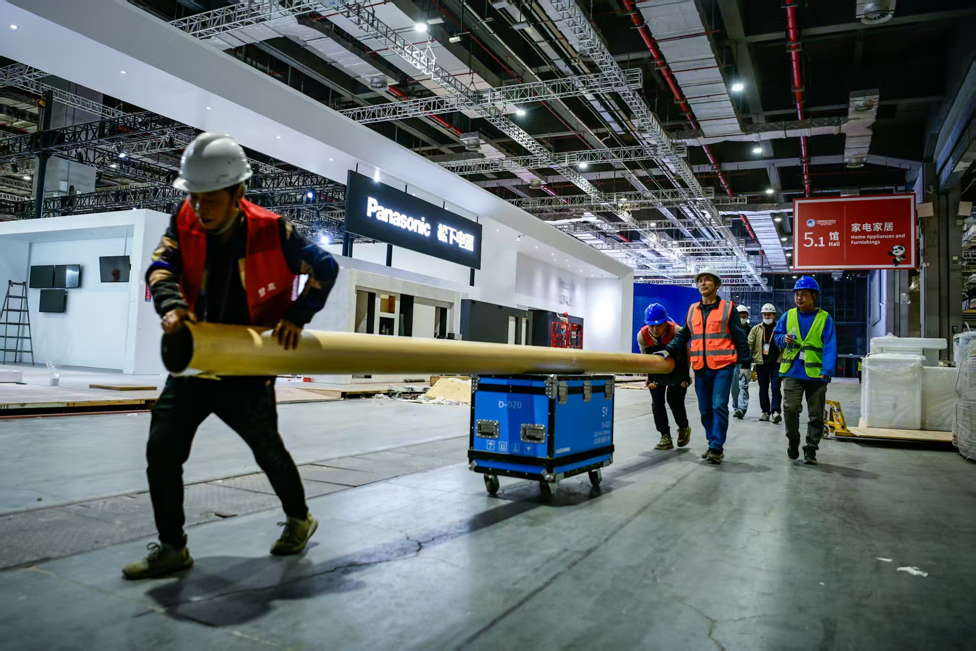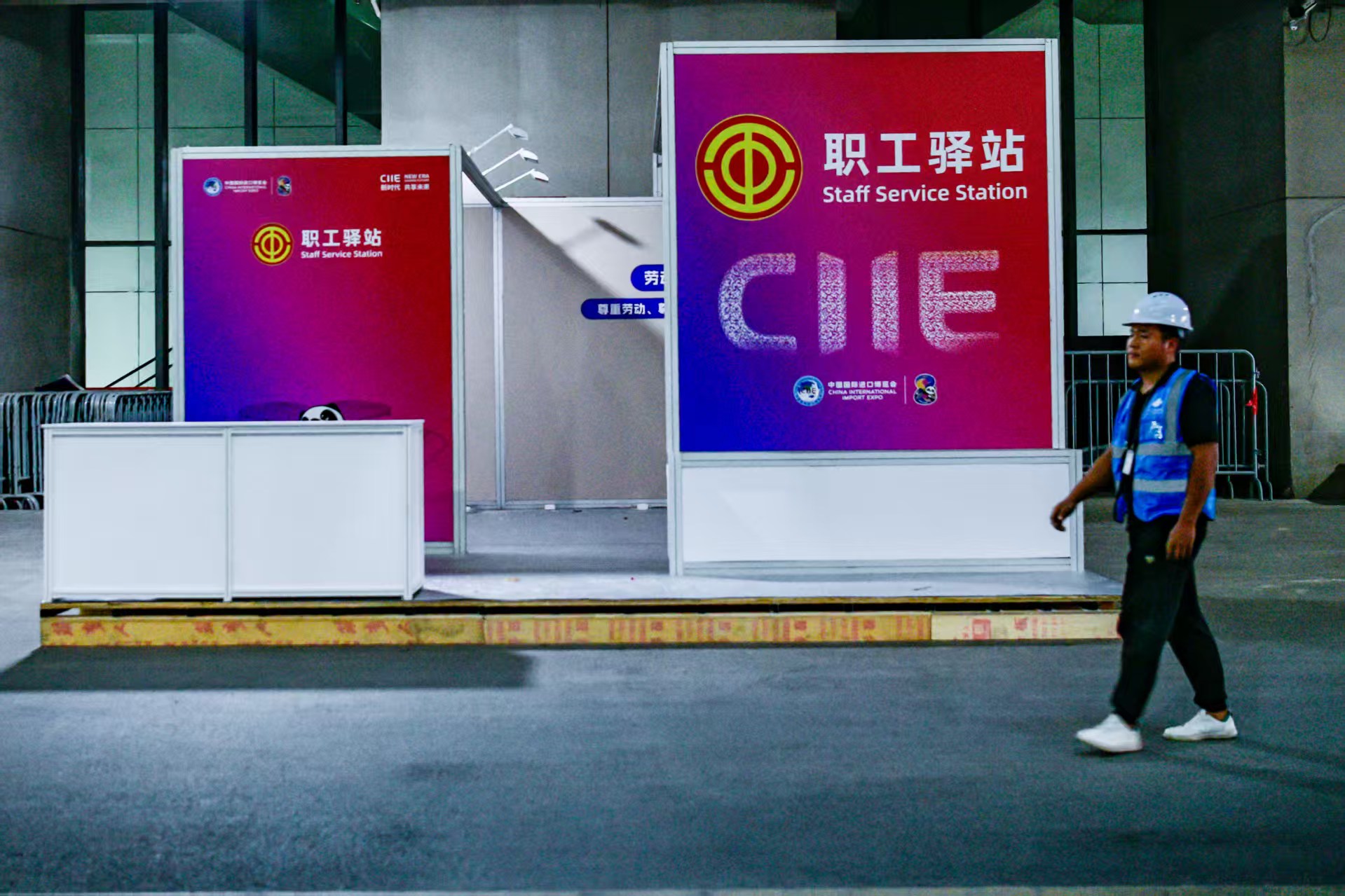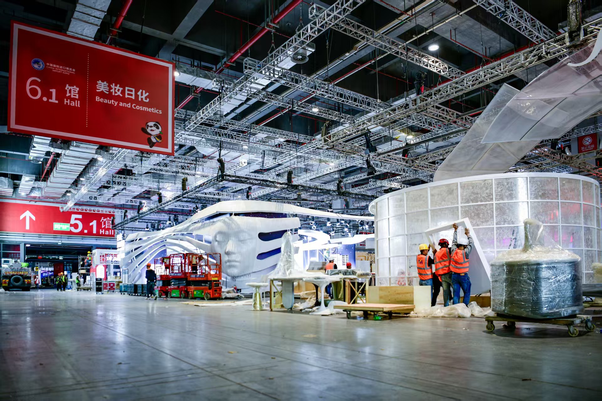 以下图片均为进博场馆布展搭建中。记者颜筱依 摄影