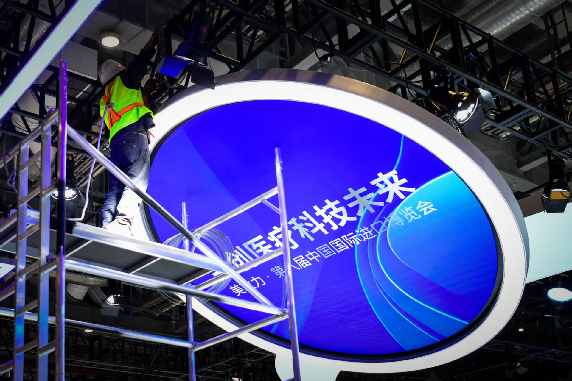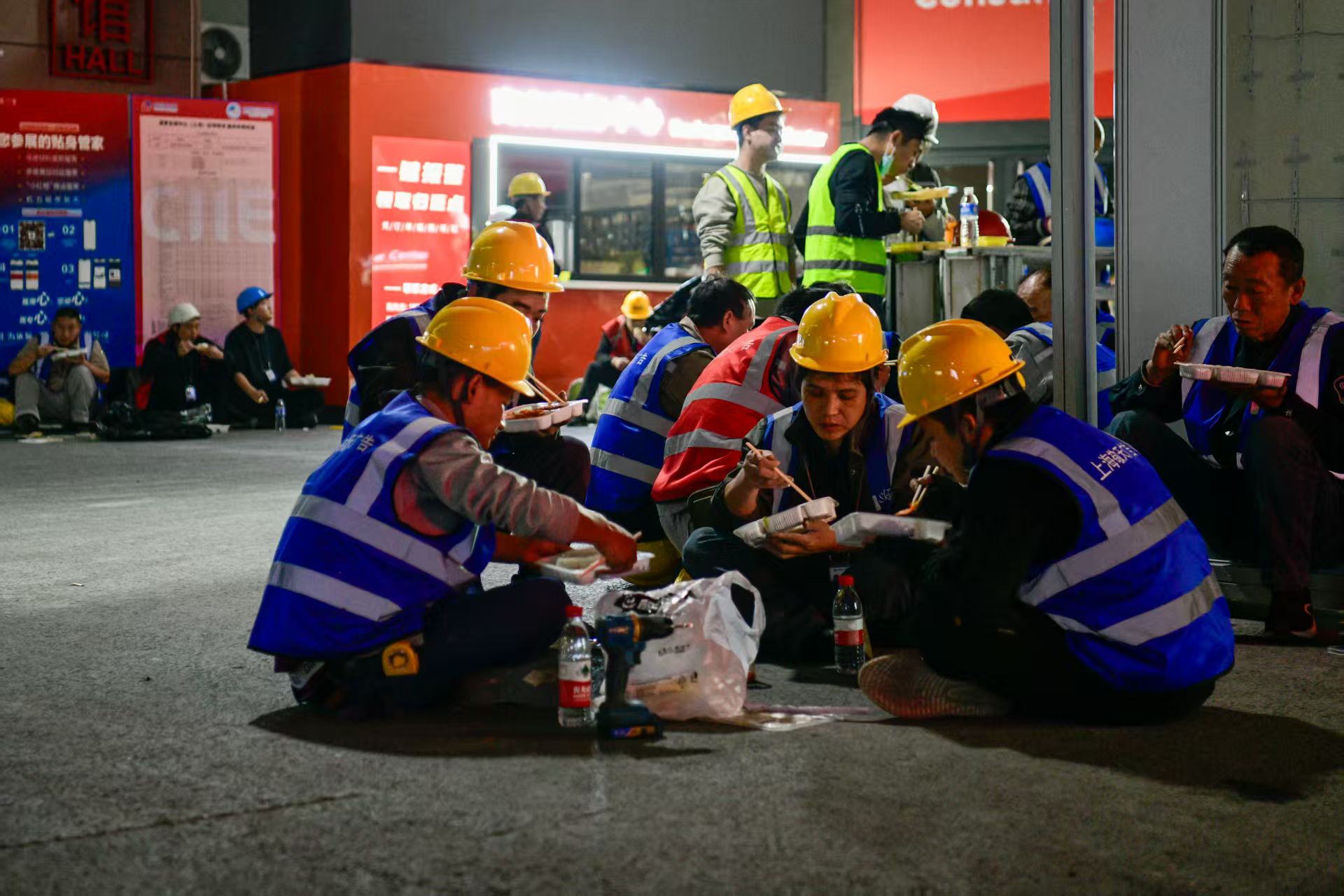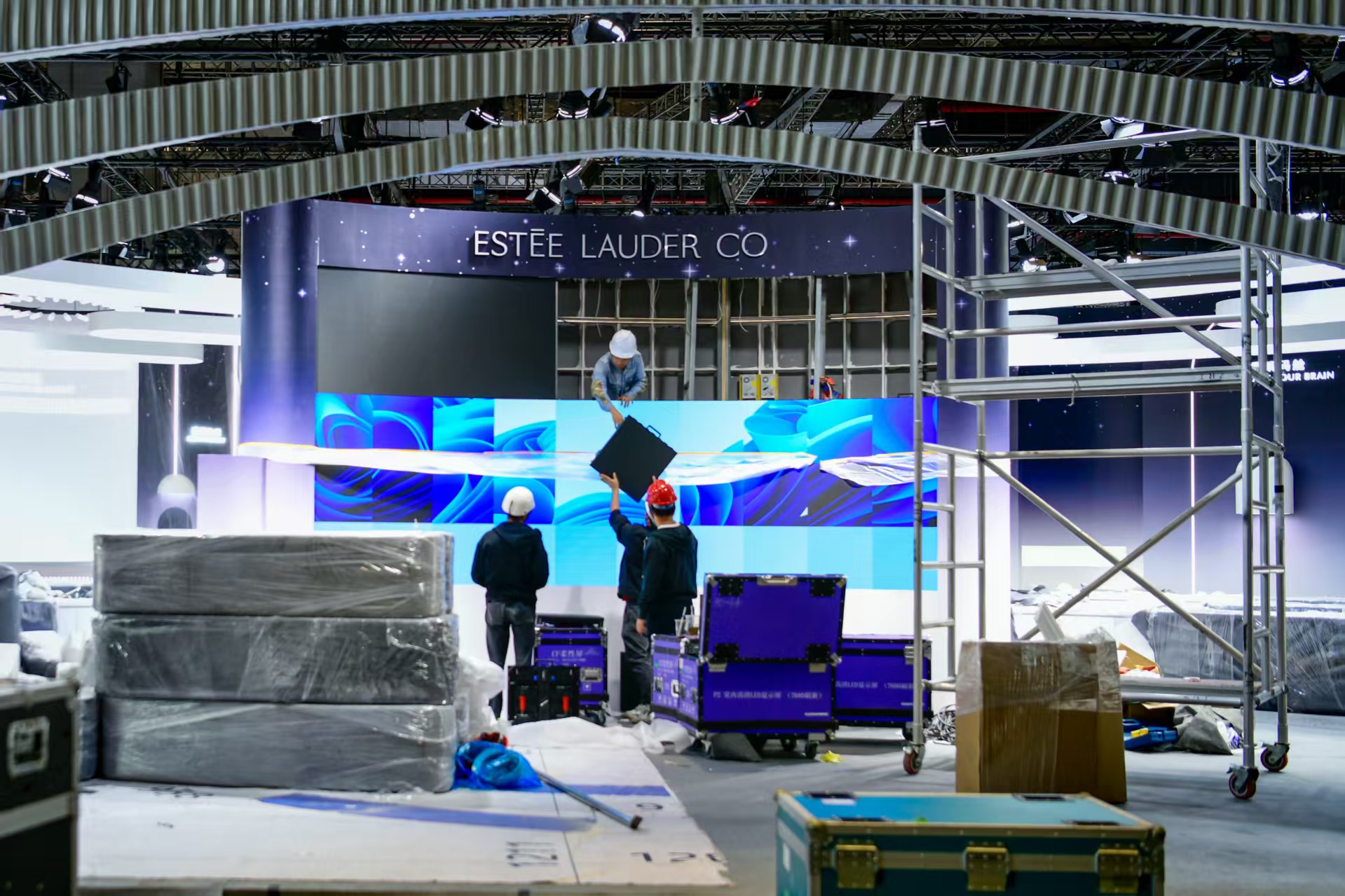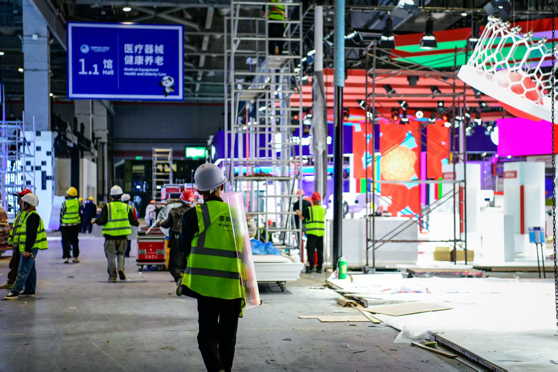以下图片均为进博场馆布展搭建中。记者颜筱依 摄影