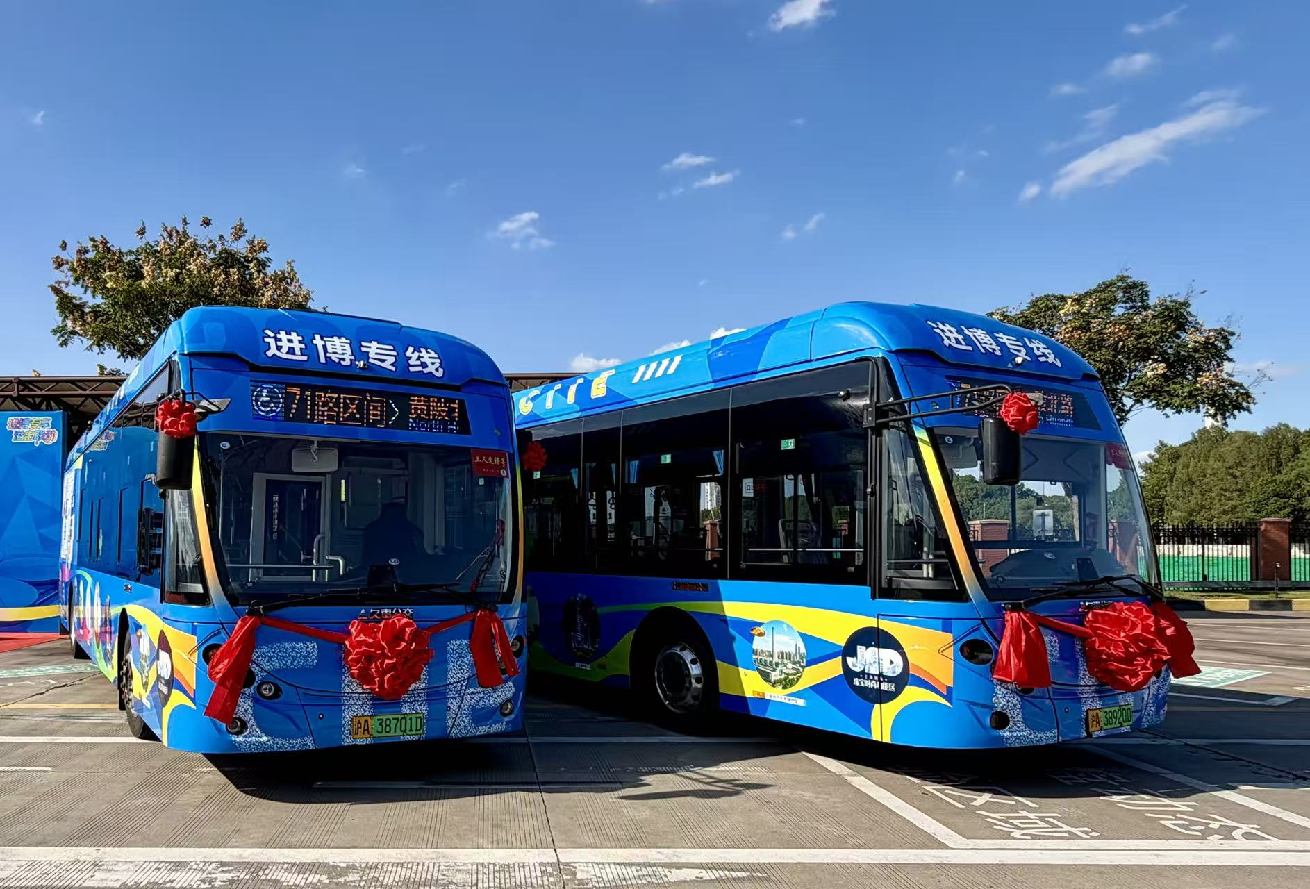 进博会期间,地面公交制定“1+4+6”模式的保障方案。其中,71路进博专线直达P5停车场,凭进博会有效证件,乘客可免费乘坐。