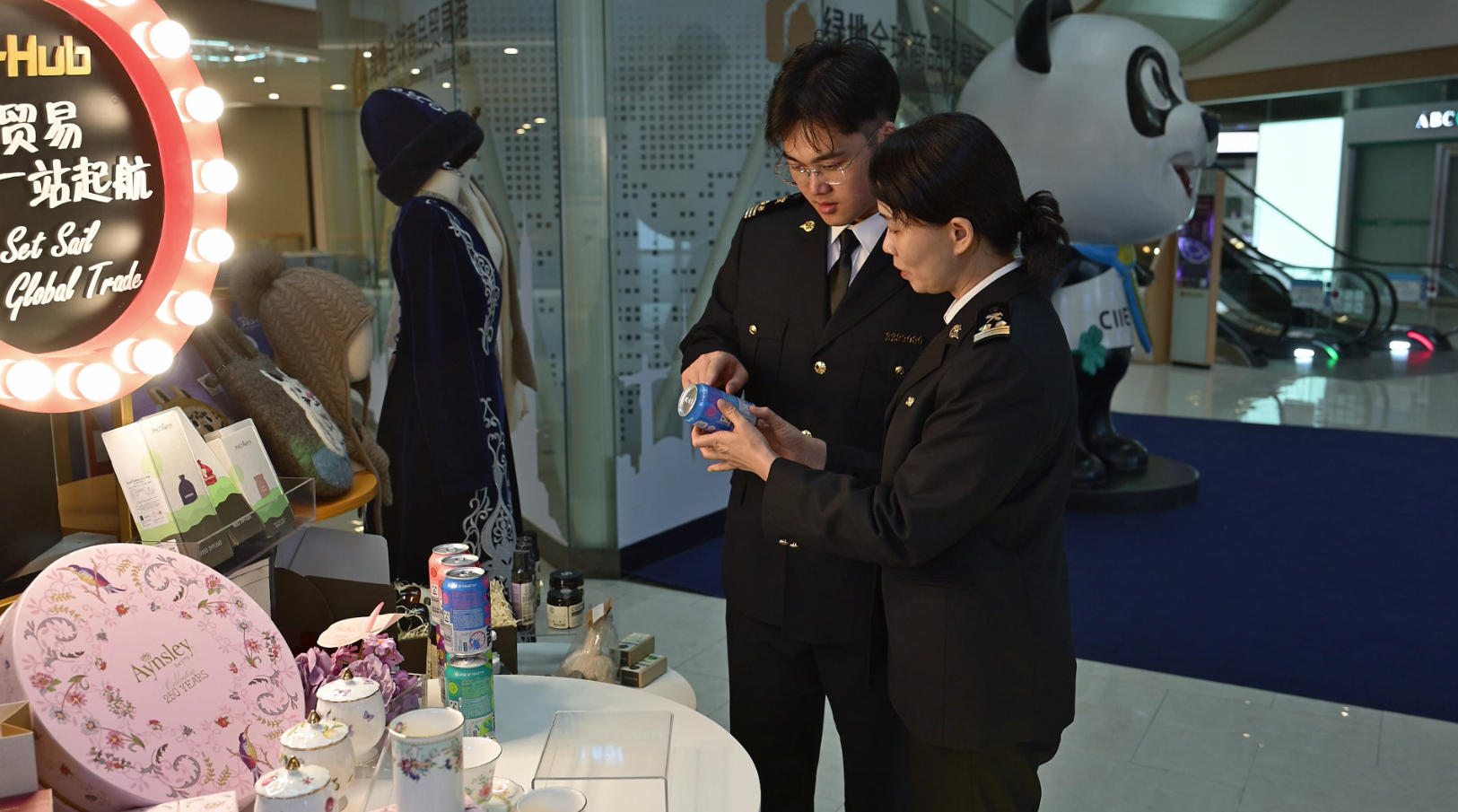 头图为上海海关所属会展中心海关派员对第八届进博会展品开展现场监管。上海海关供图