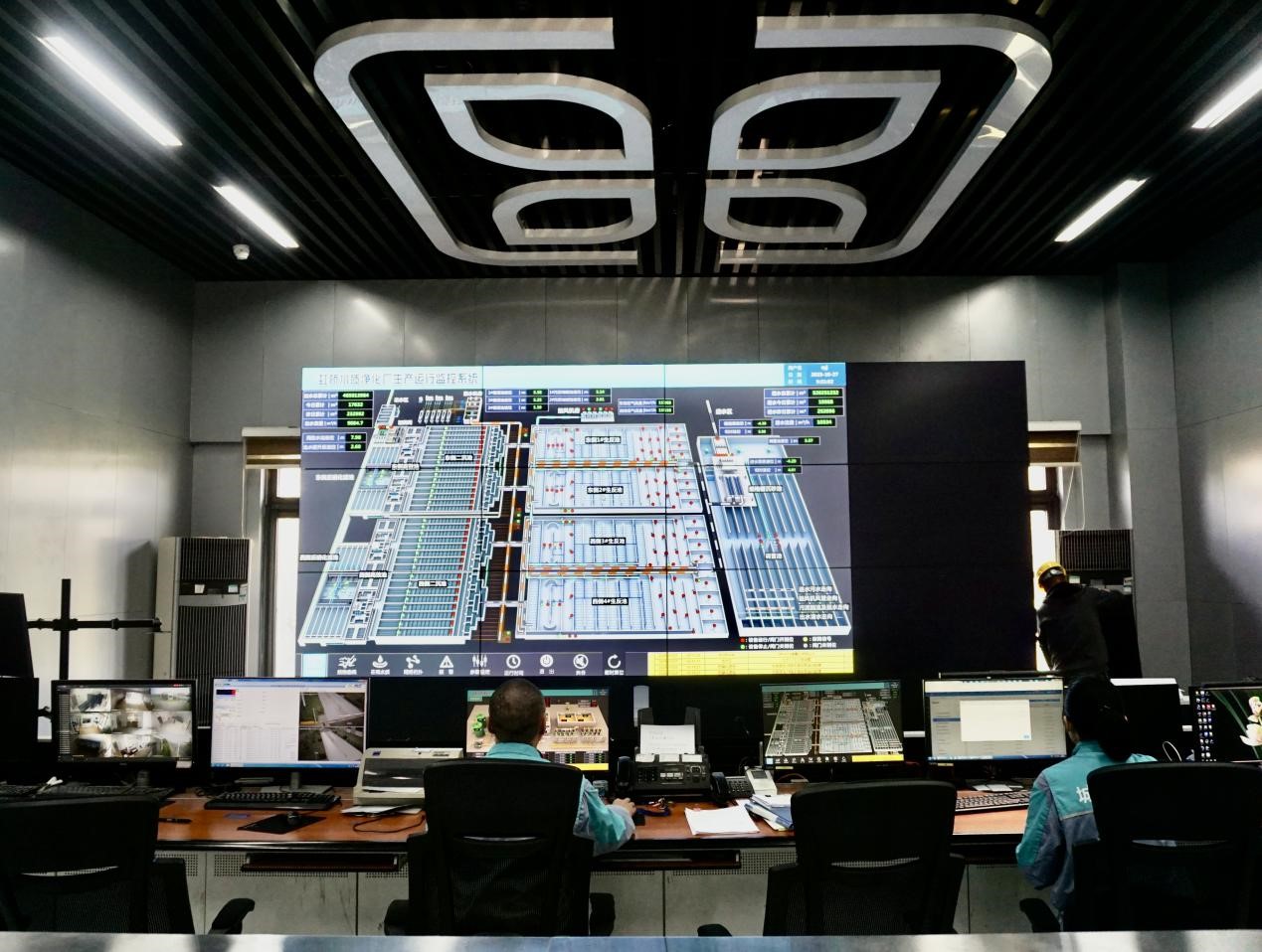 头图为虹桥污水处理厂的中控室内,工作人员通过生产运行监控系统密切监测各项数据。上海城投供图