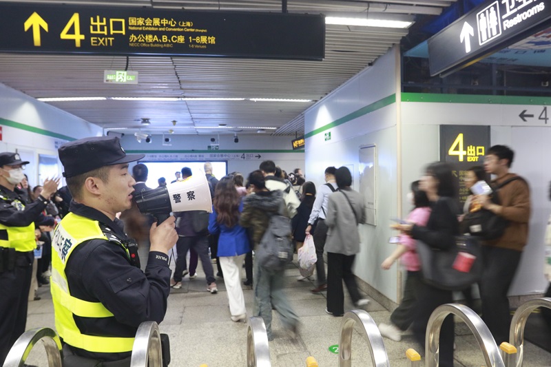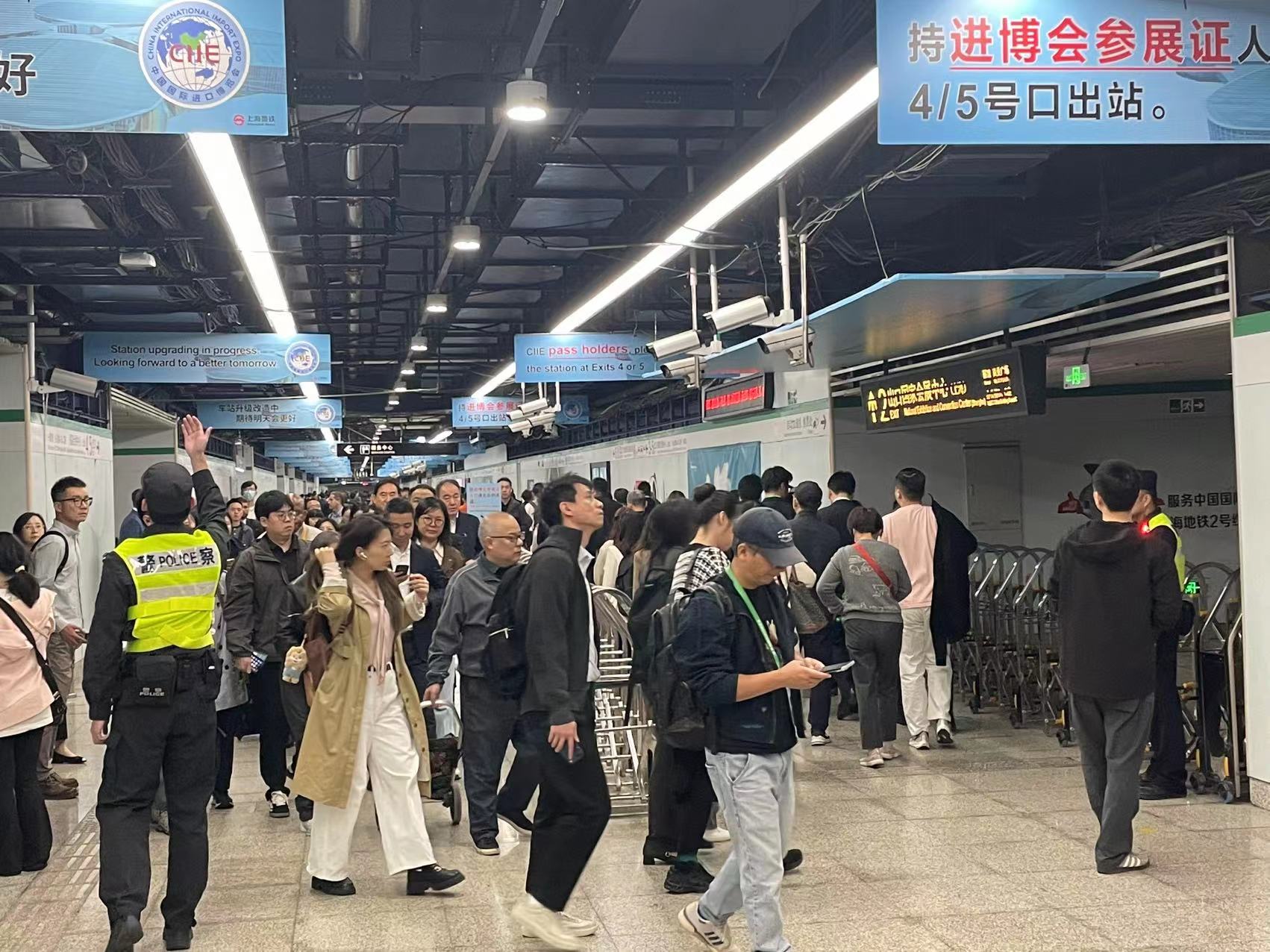 此外,据轨交警方介绍,11月1日新开通的2号线蟠祥路·国家会计学院站首次亮相进博会安保,在大客流疏导方面也将发挥积极的作用。
