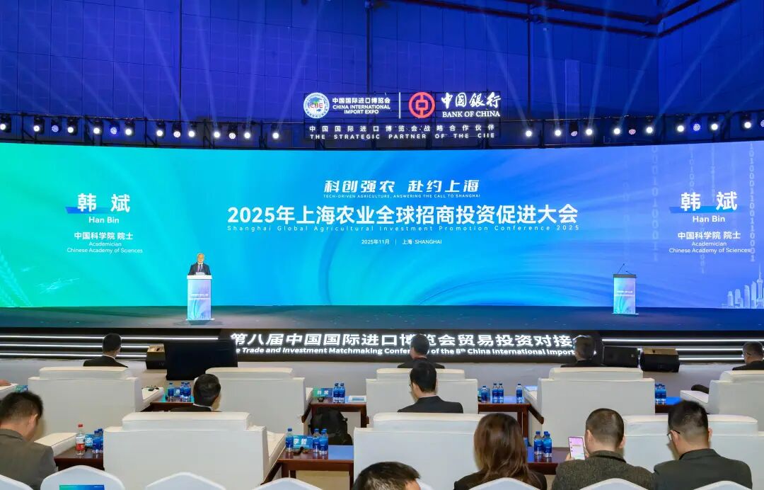 11月6日,2025年上海农业全球招商投资促进大会在进博会内成功举办。本次大会以“科创强农,赴约上海”为主题,旨在向全球展示上海农业创新发展成果,搭建高能级全球农业对话与合作平台,推动上海农业高质量发展与高水准招商。